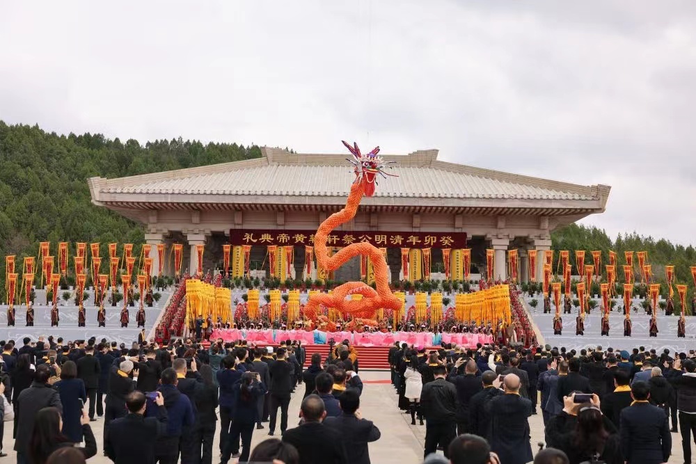 2023年4月5日,癸卯(2023)年清明公祭轩辕黄帝典礼在陕西省延安市黄陵县顺利举行。新华社发