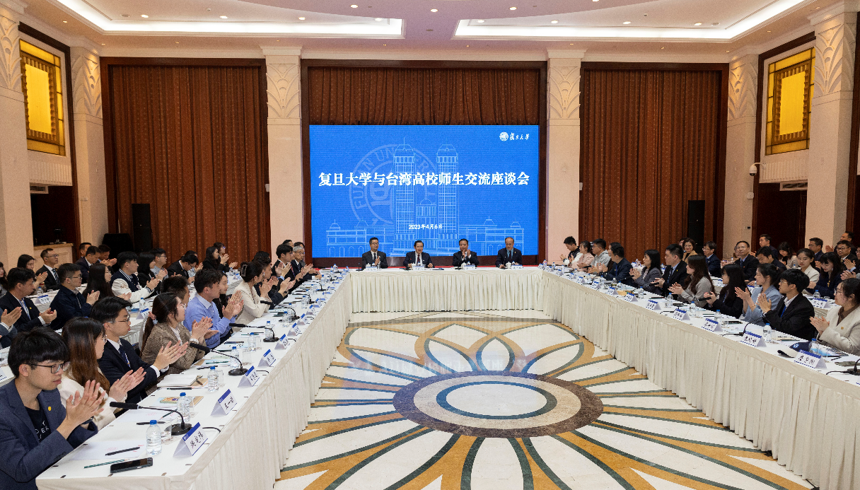 2023年4月6日,在上海复旦大学的光华楼,马英九先生带领台湾青年学生与复旦大学师生交流座谈。 新华社记者 才扬 摄