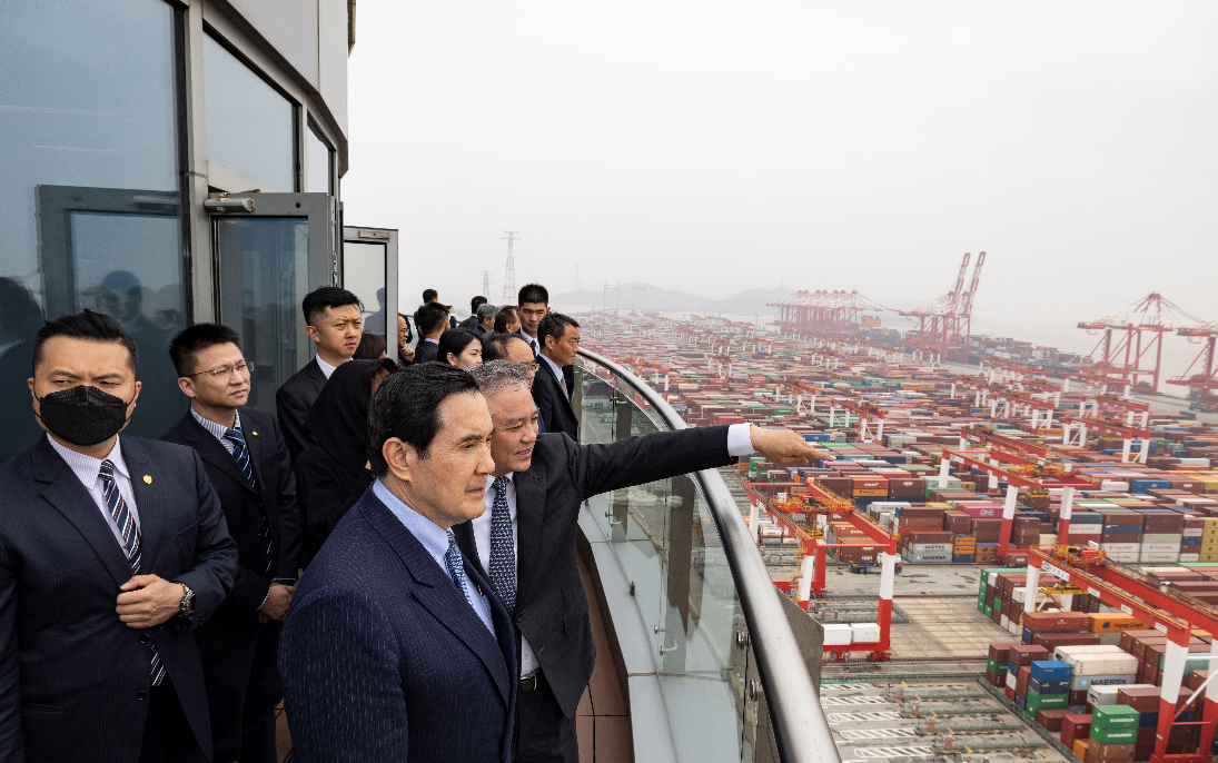 2023年4月5日,马英九先生一行参访上海洋山港区。新华社记者 才扬 摄