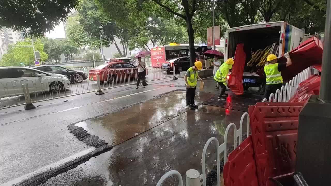 9月7日,广州天河区体育东路突发地陷,地面露出大洞,相关道路已被封锁。有关部门正在调动设备入场,开展道路维修。7日13时许,南方+记者在现场看到,地面的大洞已修补好。数辆写有“广州排水”的作业车辆在现场施工,周边用红色水马进行围挡,也有其他工作人员在现场维持秩序。
