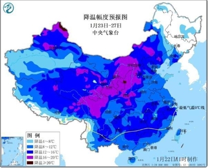 寒潮将从新疆地区出发,继而影响我国西北地区大部,然后直冲中东部大部地区。