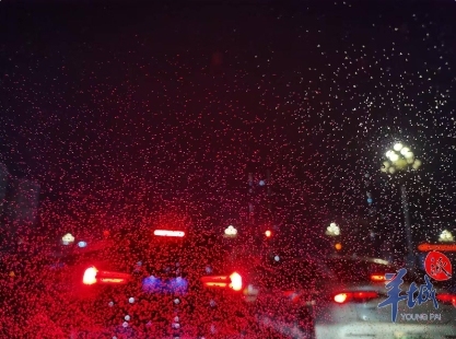 22日晚广州突降小雨,铺满了车窗。网友供图