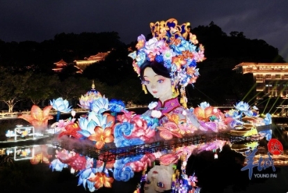 大量游客涌入南沙赏灯。羊城晚报记者 曾育文 刘颖颖 摄