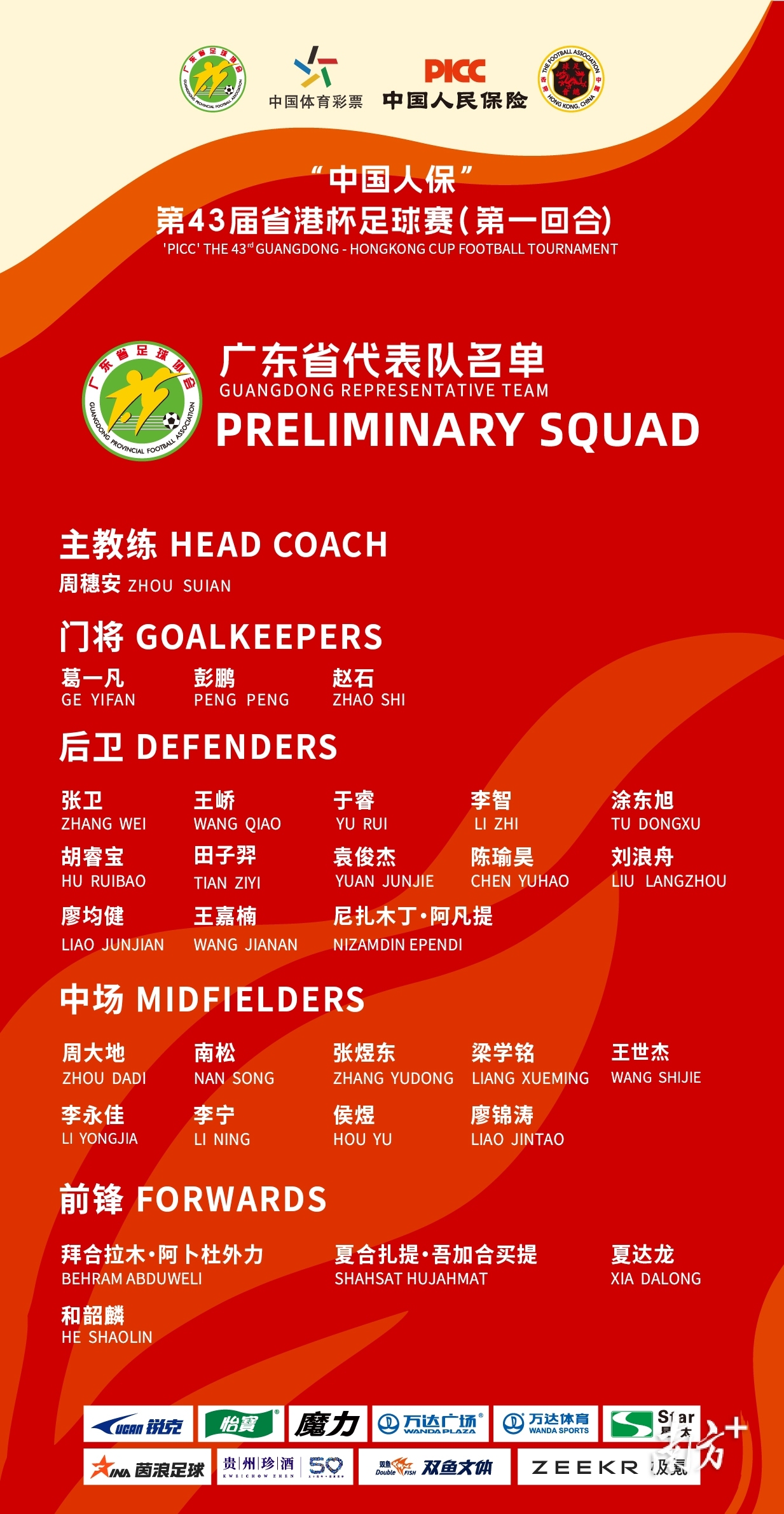 据介绍,今年的省港杯首次加入了深圳元素,由中超的深圳新鹏城足球俱乐部队员为班底组建广东队,同时加入了梅州客家、广东广州豹队的球员组成强大阵容,继续由本土名帅周穗安担任主帅,深圳新鹏城队的意大利籍主教练拉坦齐奥则出任执行主帅。