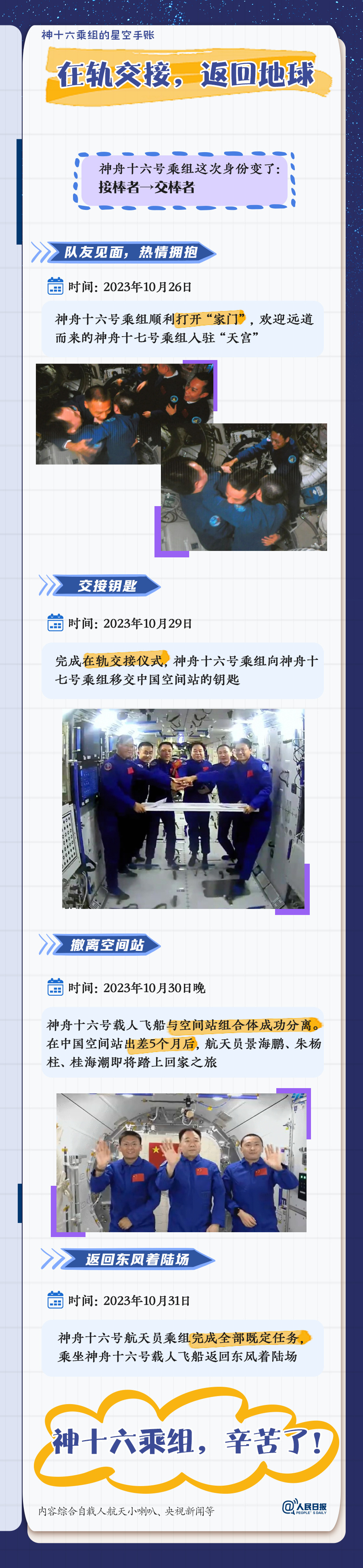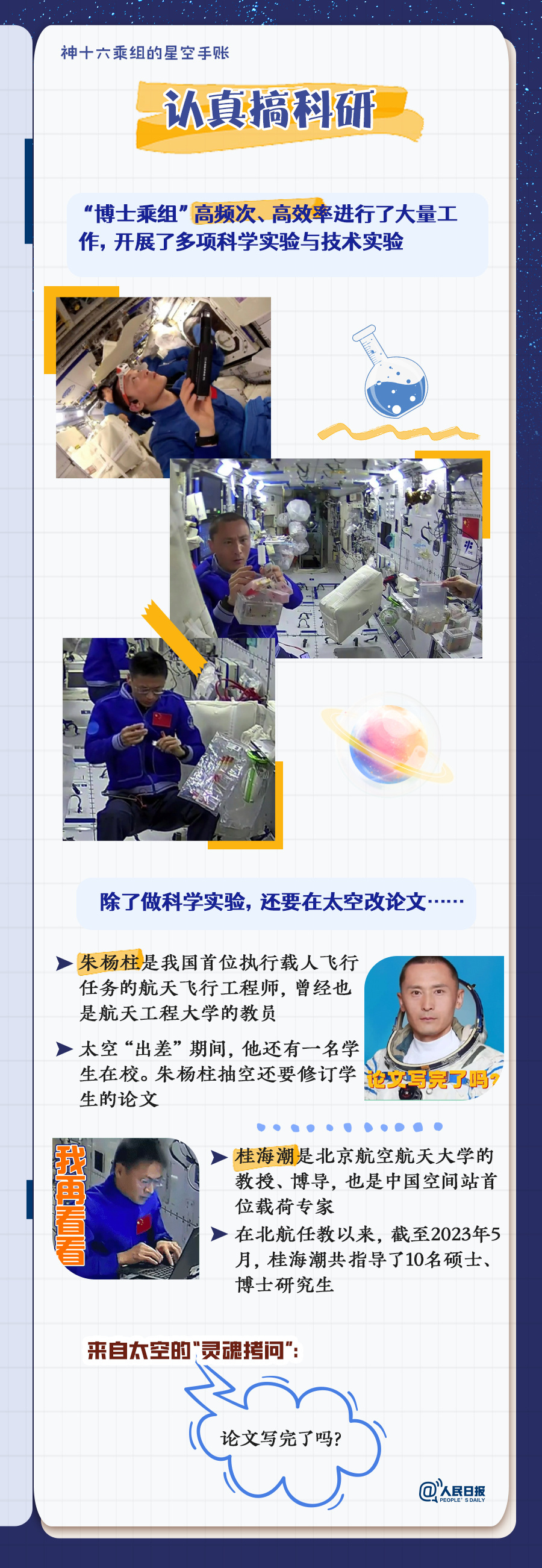 今天,神十六航天员景海鹏、朱杨柱、桂海潮平安返回地球。5个月的太空“出差”,“博士乘组”不仅完成了出舱任务、科研工作、太空授课,还自己种菜、给学生改论文…一组手账回顾神十六太空之旅↓↓ 编辑 唐嘉欣 订阅后可查看全文(剩余80%)