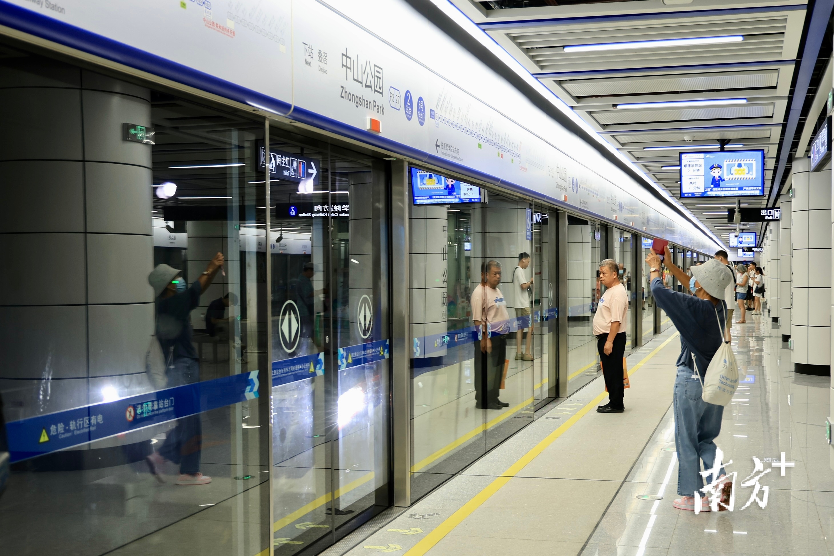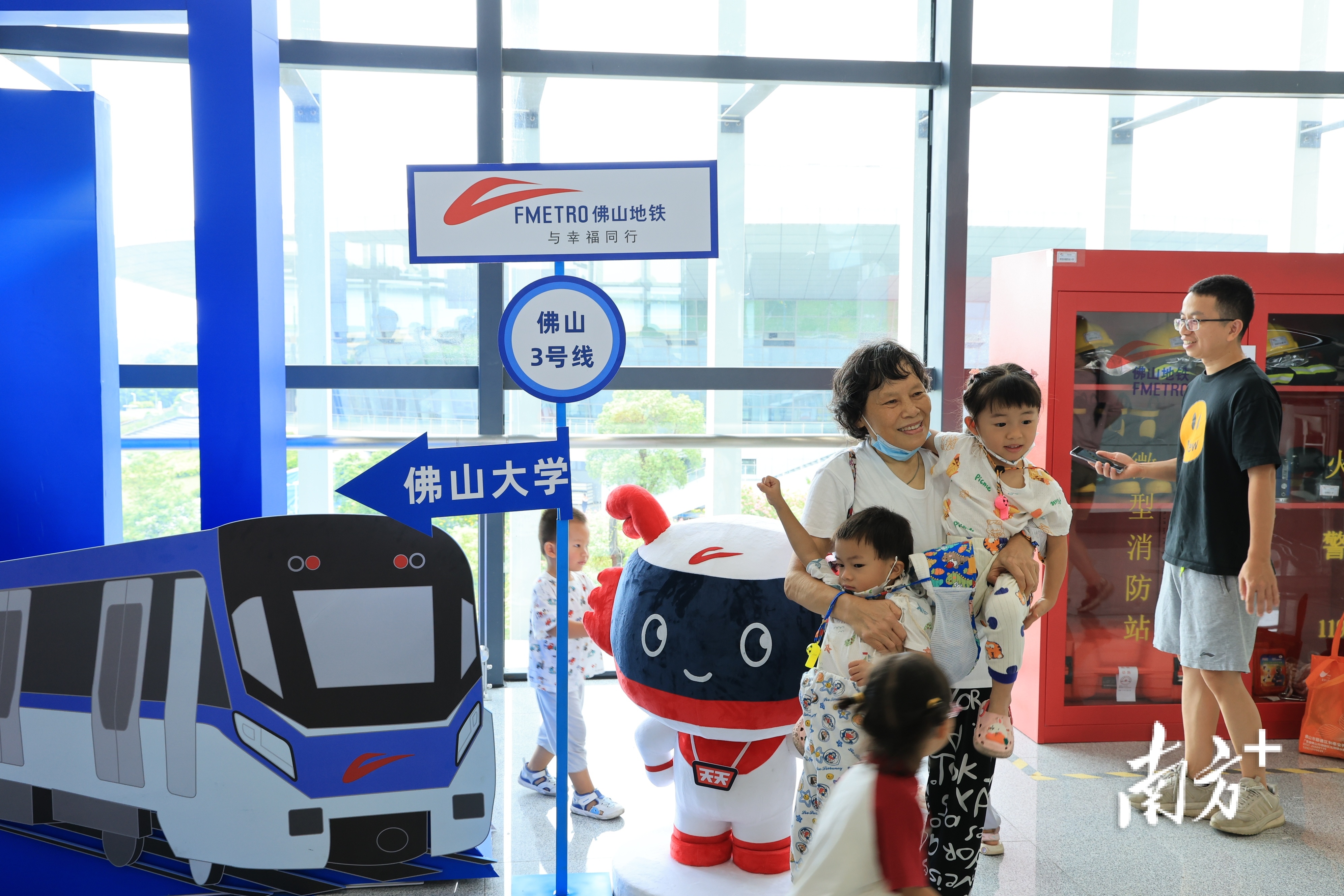 市民在佛山大学站拍照留念。 刘佳伦 摄