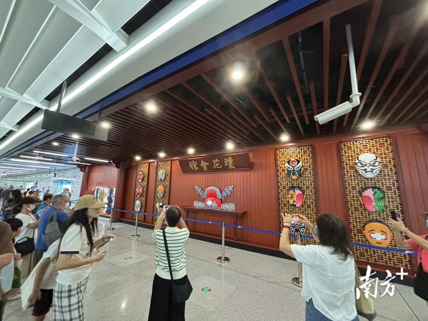 市民在中山公园站内的文化打卡点拍照。 龙西男 摄