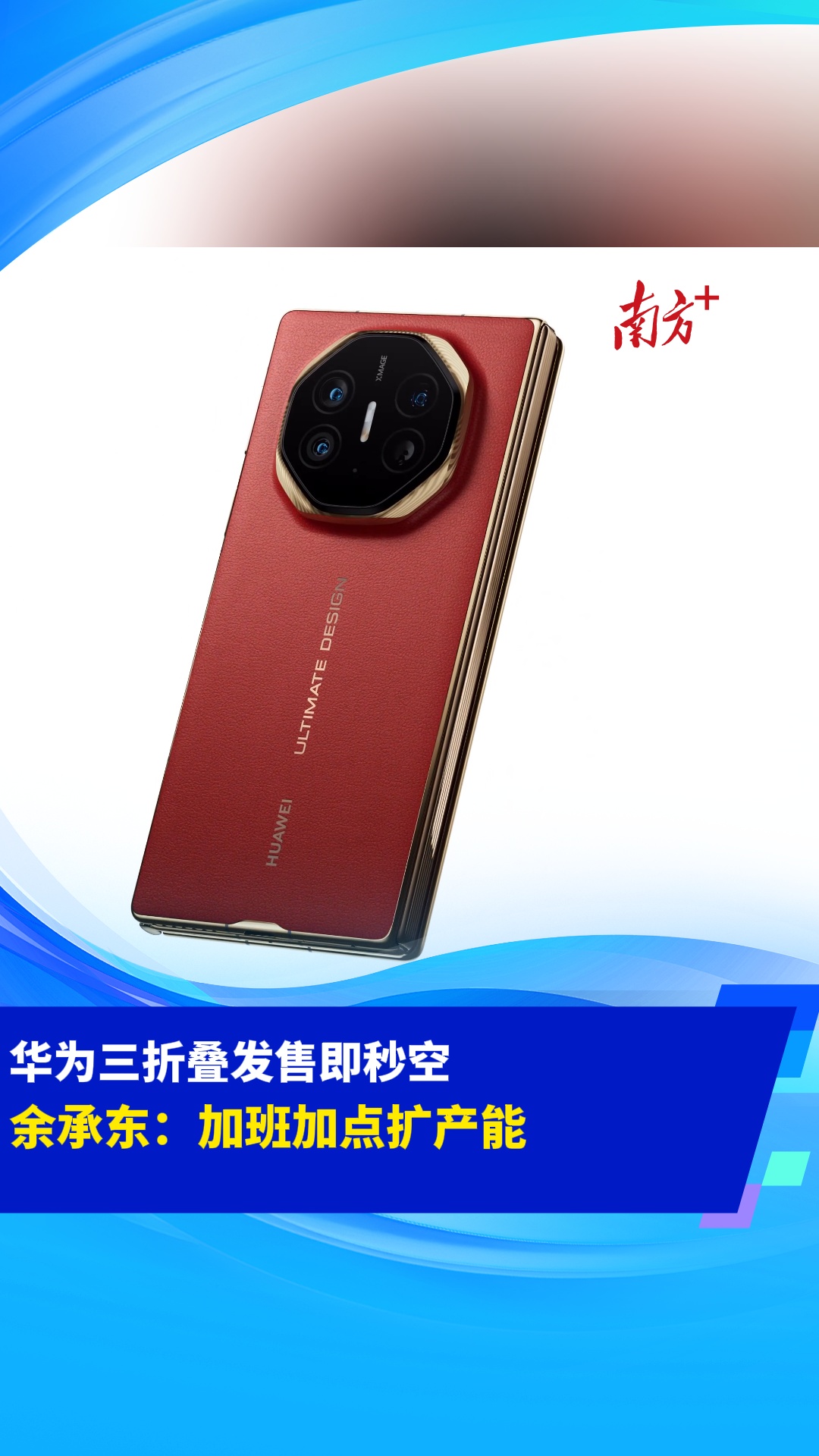 华为三折叠发售即秒空,余承东:加班加点扩产能
