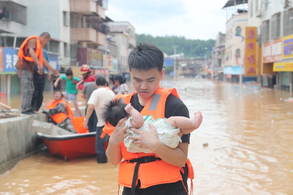 平远大柘镇坝头村村民张先生,原本已脱险,当得知还有20余户人家被困时,不仅借出橡胶船,还主动请缨,与救援人员帮助60多位村民转移到安全地带。