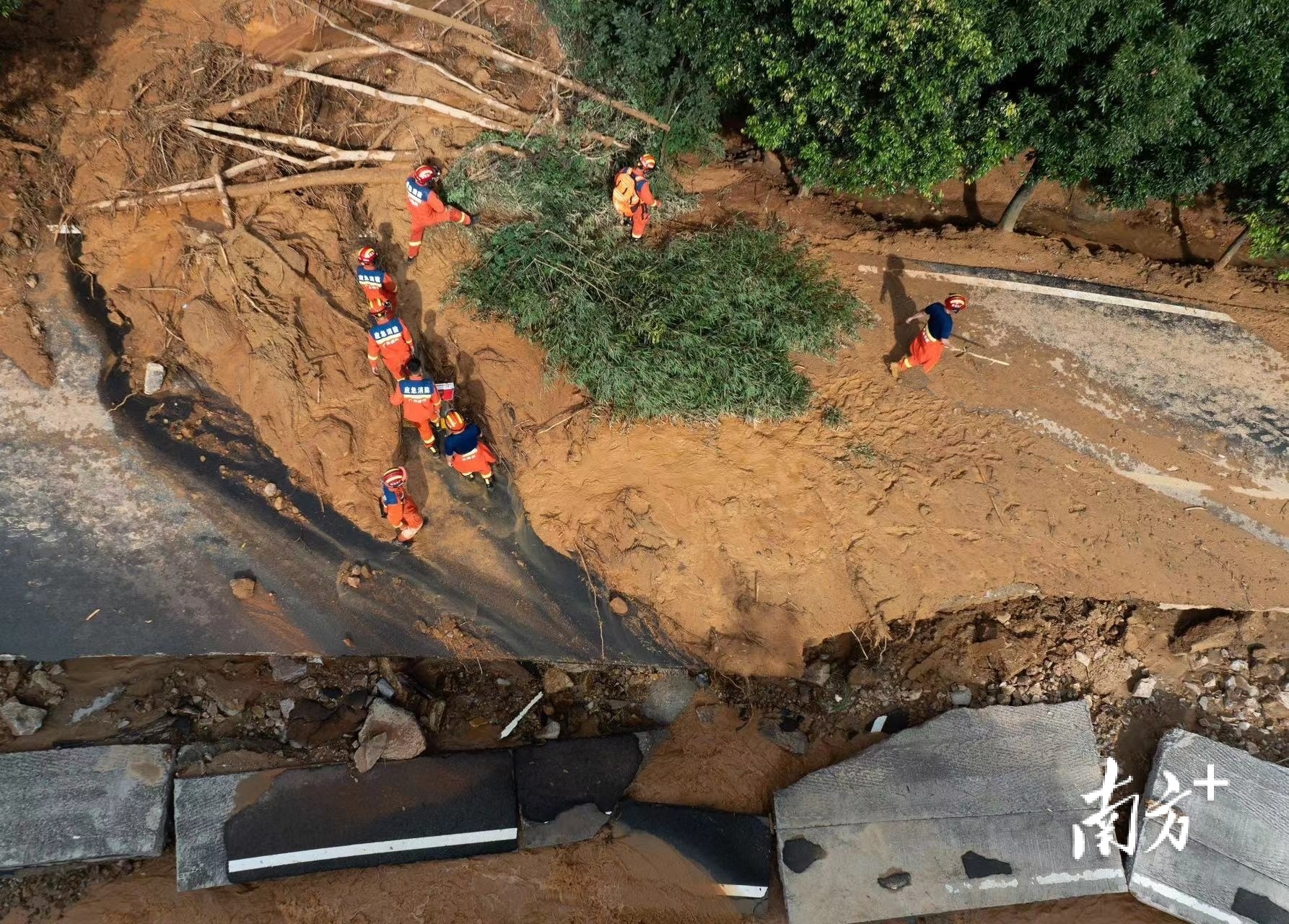 6月16日,救援人员步行进入平远县灾区。南方+记者 董天健 摄