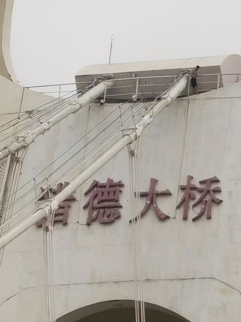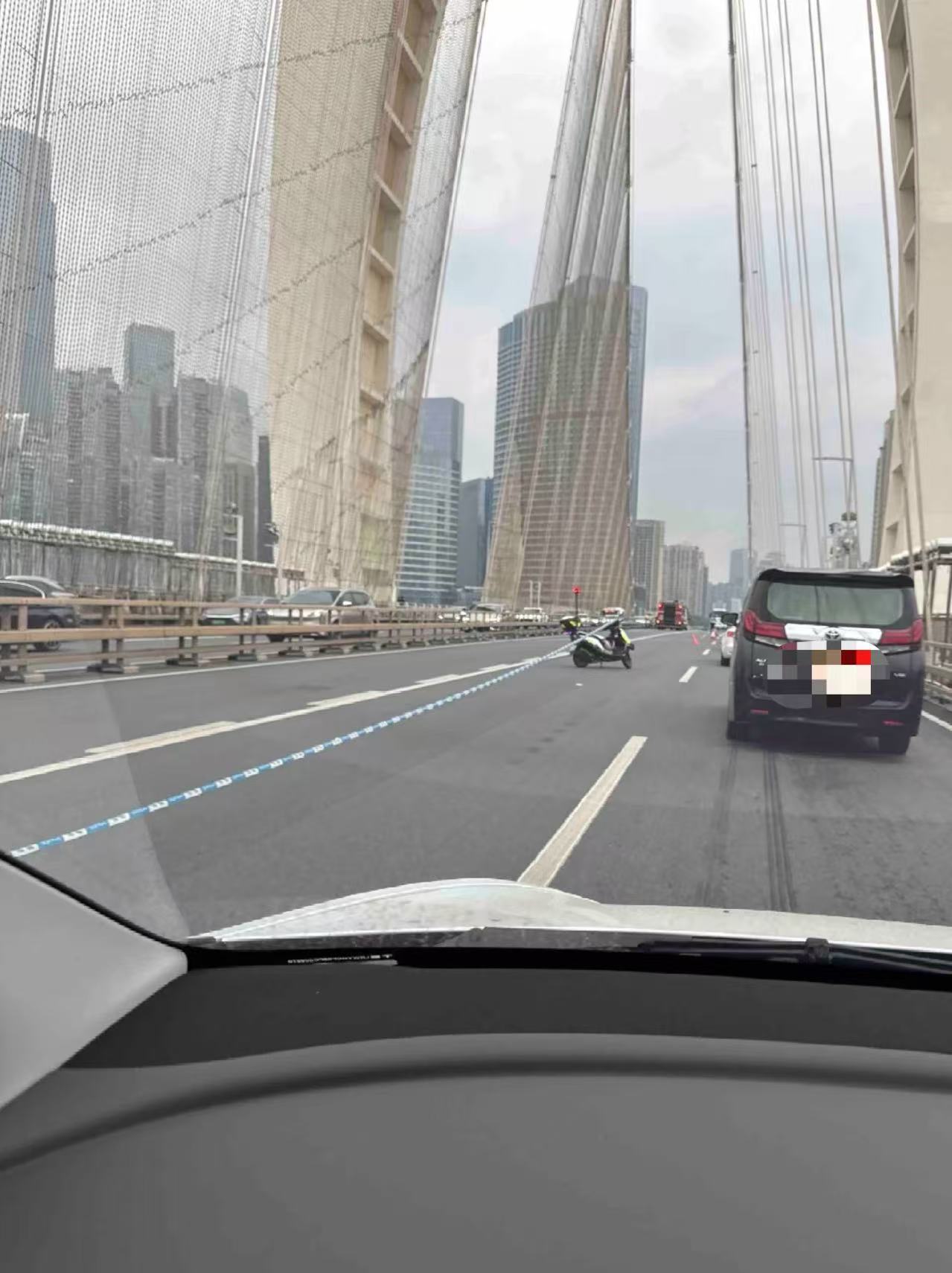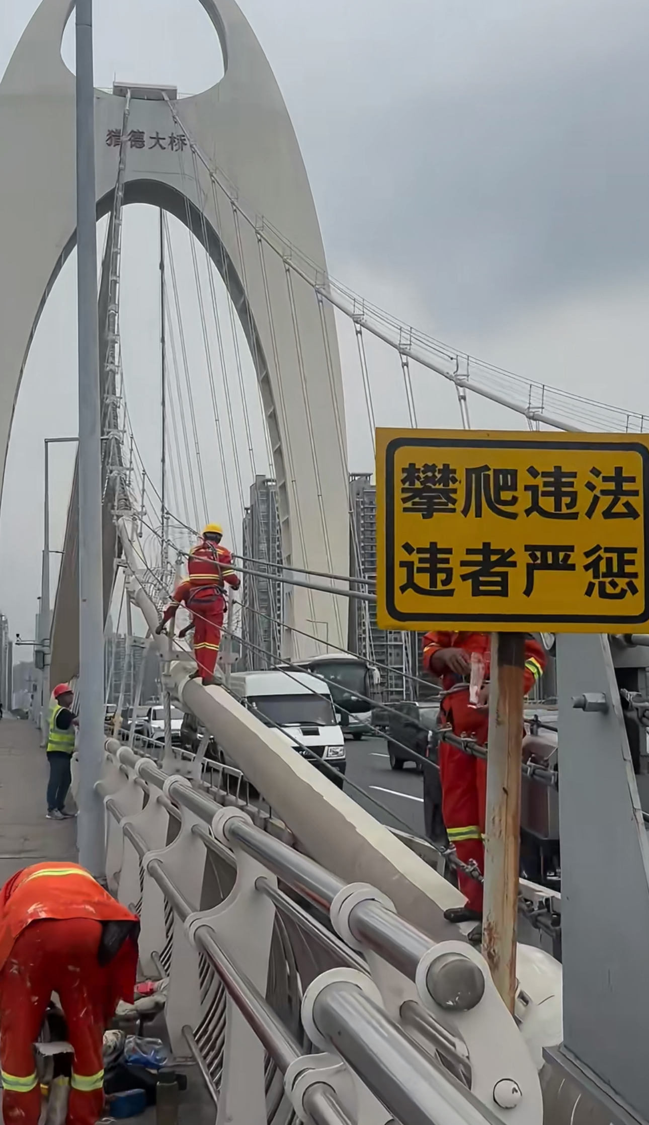 有人爬上桥顶部疑要跳桥,猎德大桥交通管制引发堵塞
