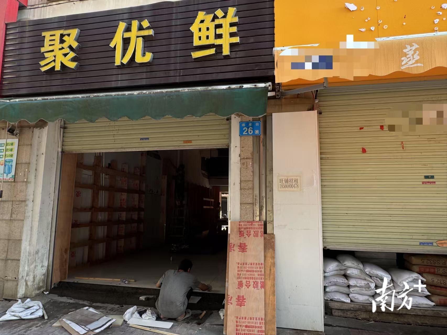 4月21日下午,记者走访倒闭生鲜超市附近的商业街了解到,锦绣半岛西区与南区之间商铺数量较少,大约有20间左右,目前有两家小型生鲜商店,三周前倒闭的大型超市占用面积大,连租了多个铺位。