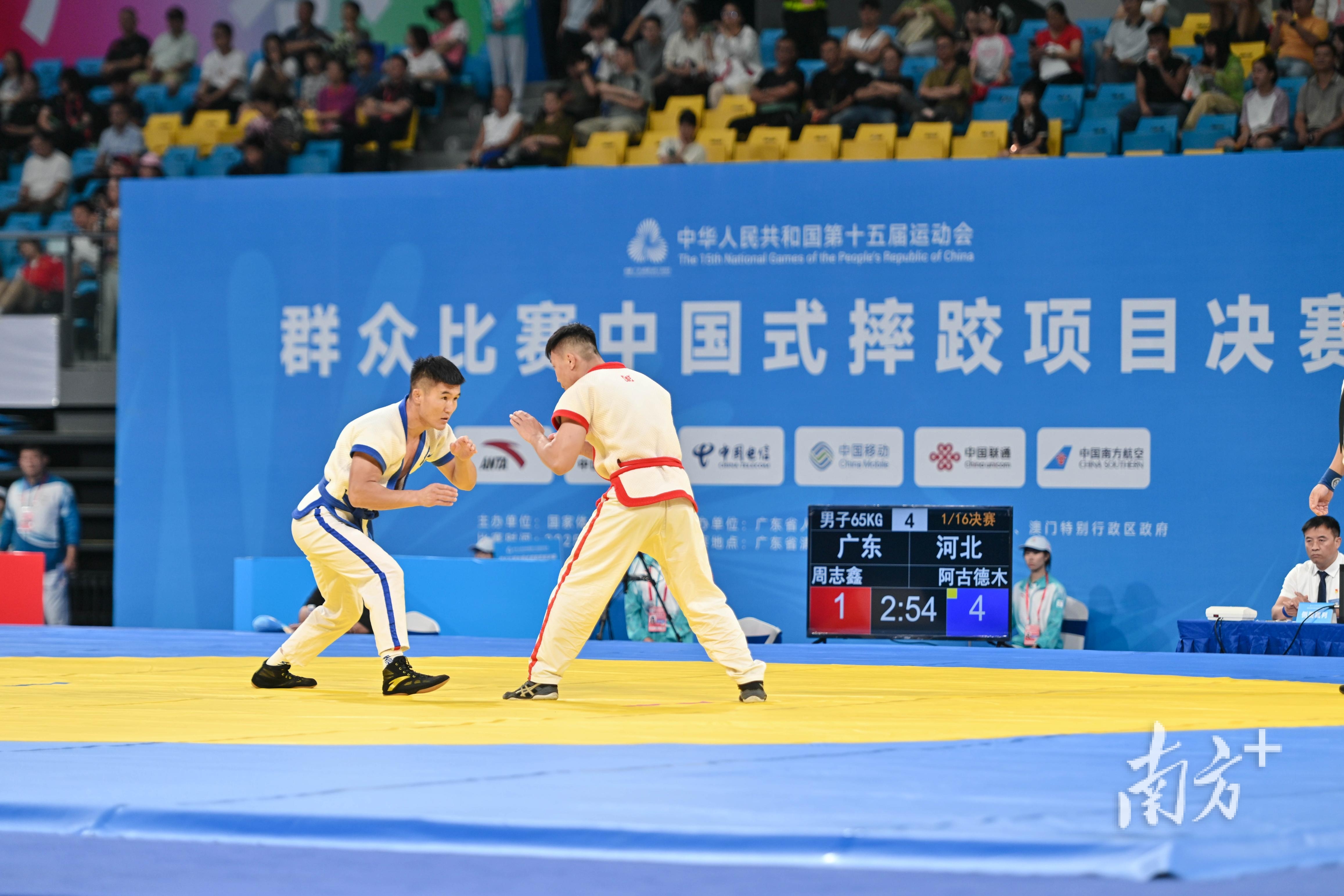 7月24日,十五运群众比赛中国式摔跤项目决赛在清远开赛。南方+记者 曾亮超 摄