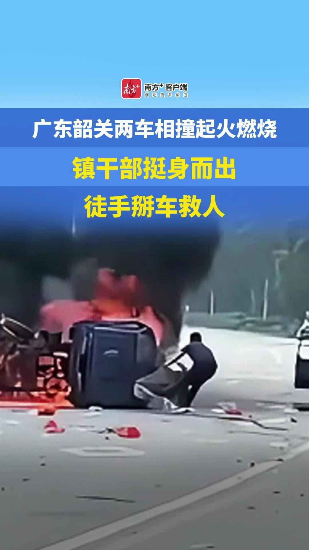 广东韶关两车相撞起火燃烧,镇干部挺身而出,徒手掰车救人