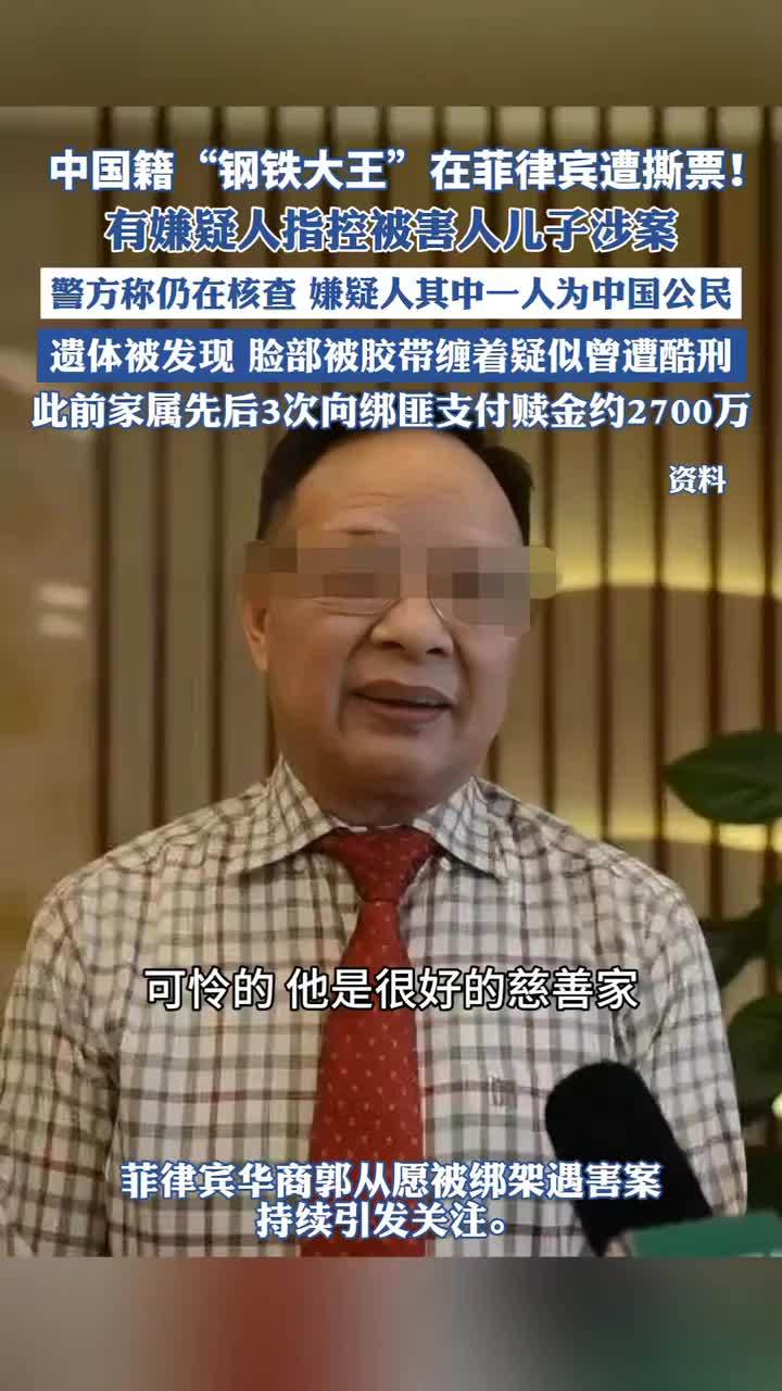 中国籍“钢铁大王”在菲律宾遭撕票!有嫌疑人指控被害人儿子涉案,警方称仍在核查