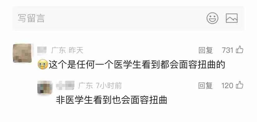 有网友留言表示:“这是任何一个医学生看到都会面容扭曲的。”