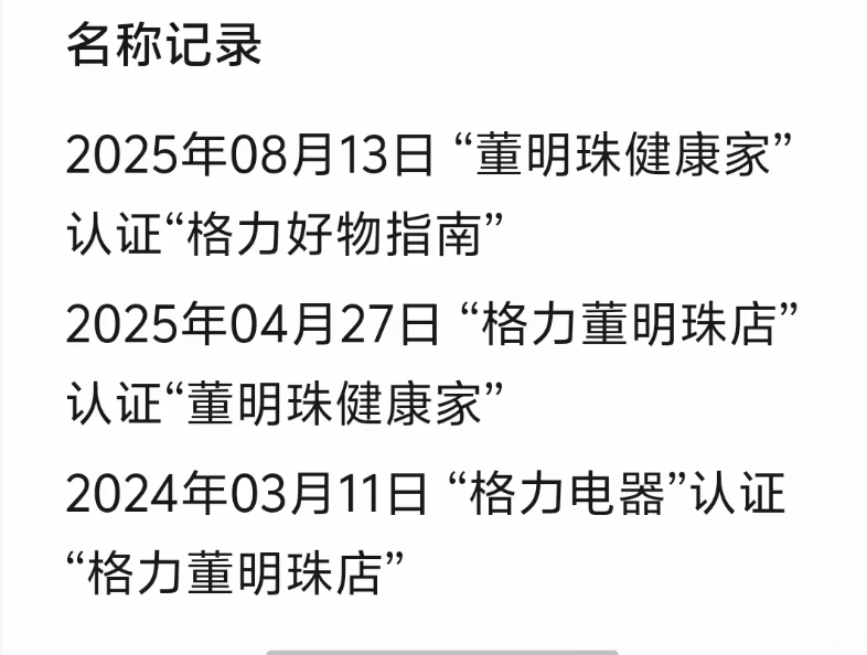 今年年初,全国多地的格力线下专卖店纷纷将招牌更换为“董明珠健康家”,同时多个与格力电器相关的线上直播间也同步更名为“董明珠健康家”,如2025年4月27日,原“格力董明珠店”公众号改为“董明珠健康家”。这一变动引发了广泛关注和热议。