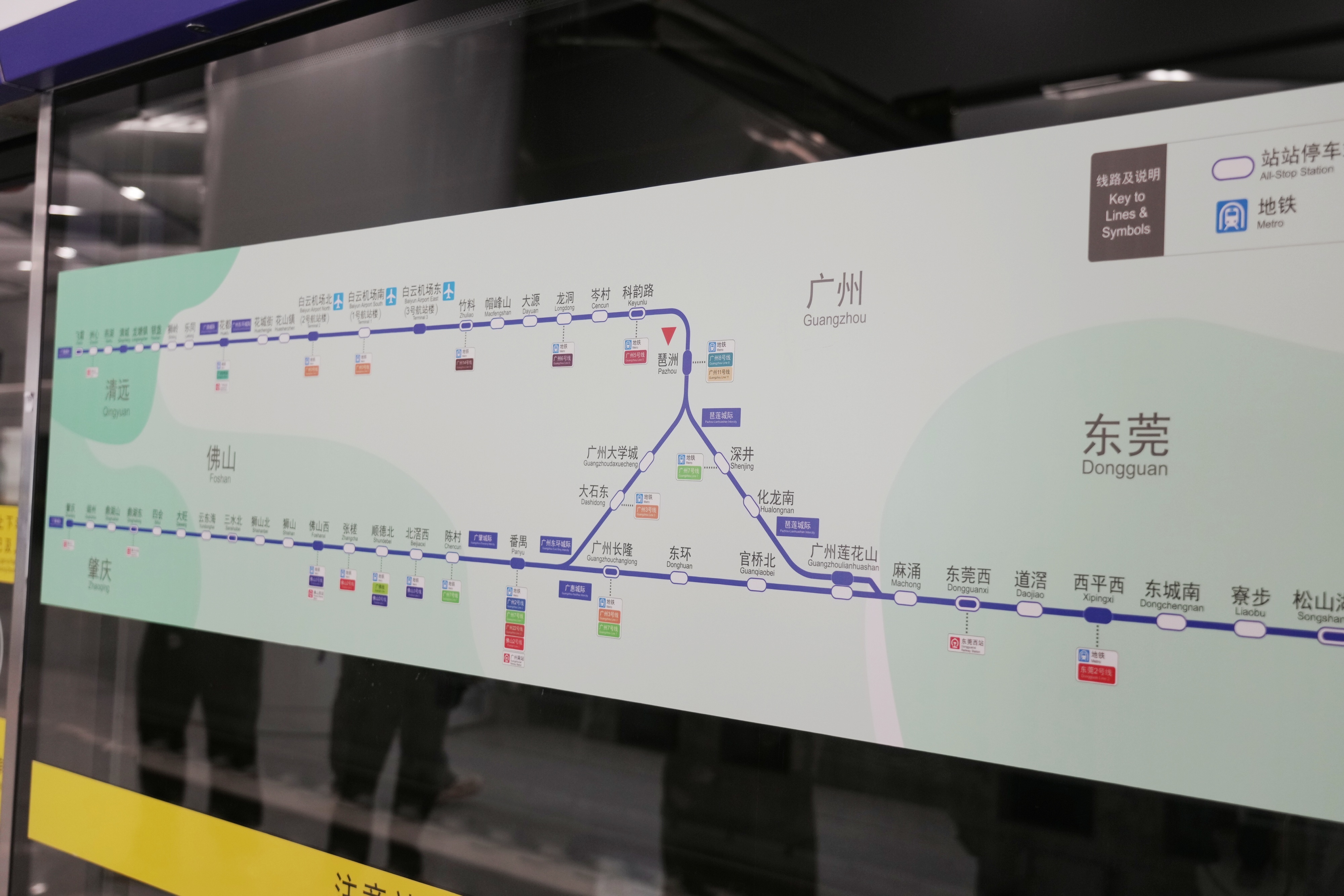 届时,广东城际将开行8条交路,即“飞霞-惠州北”“飞霞-肇庆”“肇庆-惠州北”“花都-惠州北”“白云机场北-佛山西”“白云机场北-东莞西”“白云机场北-竹料”“佛山西-东莞西”8条交路,串联起广州南站、广州北站、白云机场、金融城、琶洲等重要交通枢纽和商务区,实现“枢纽到枢纽”“中心到中心”“枢纽与中心”三个互达。