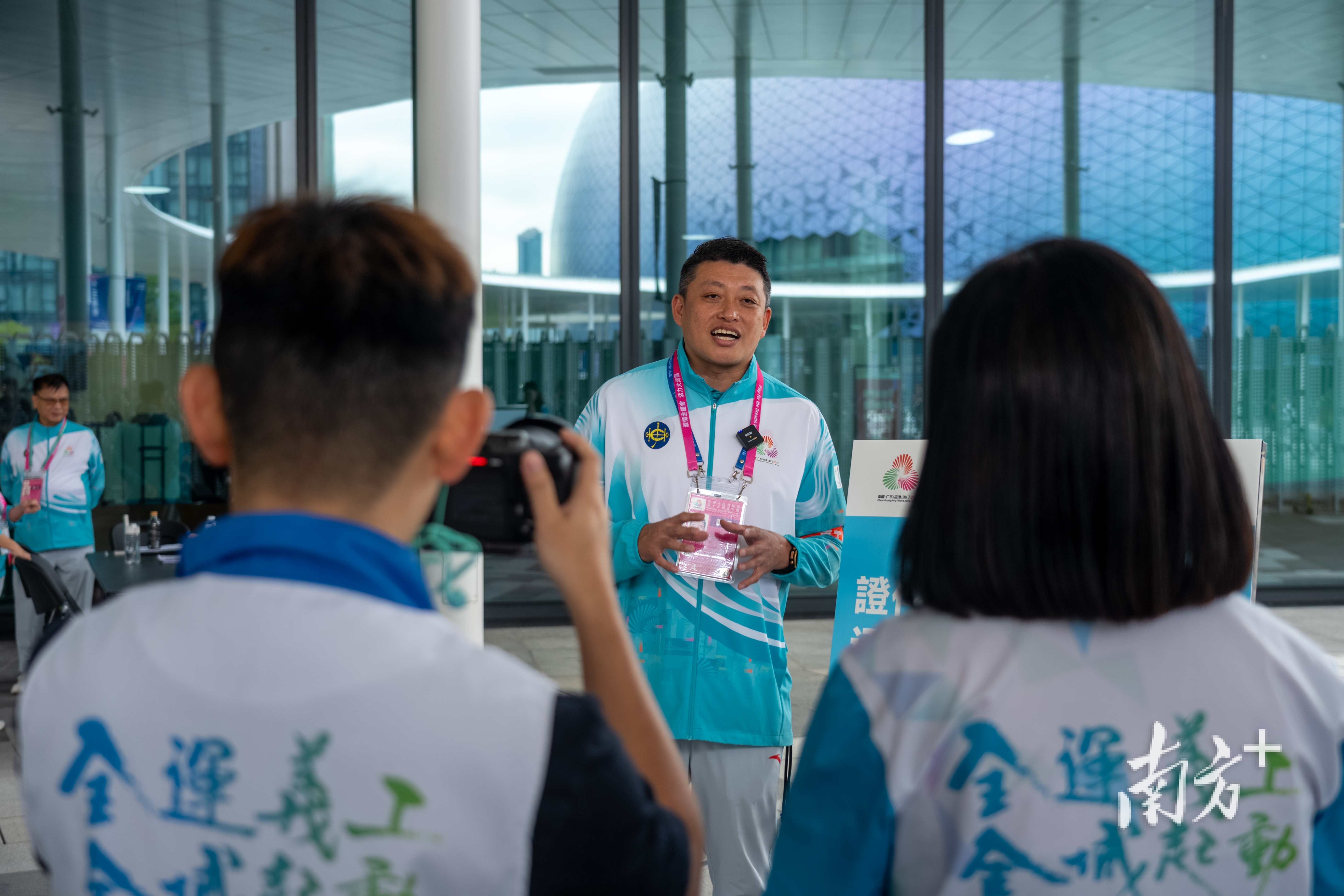 “得知十五运会由粤港澳合办,我很兴奋。这是香港首次参与承办国家级的综合性运动会,意义非凡。”谈起报名志愿服务的初衷,梁国成语气中仍带着当时的澎湃。这份发自心底的归属感与自豪,让他第一时间递交申请,并凭借资深背景,一路通过面试,更被委任为面试官及义工领袖。