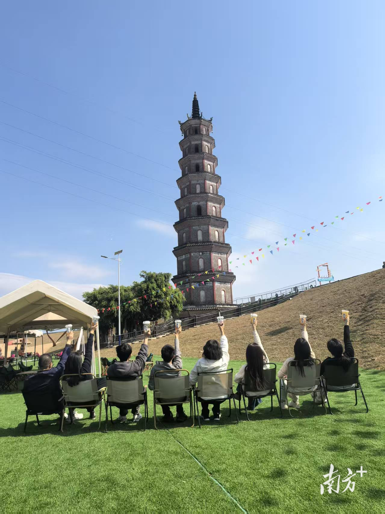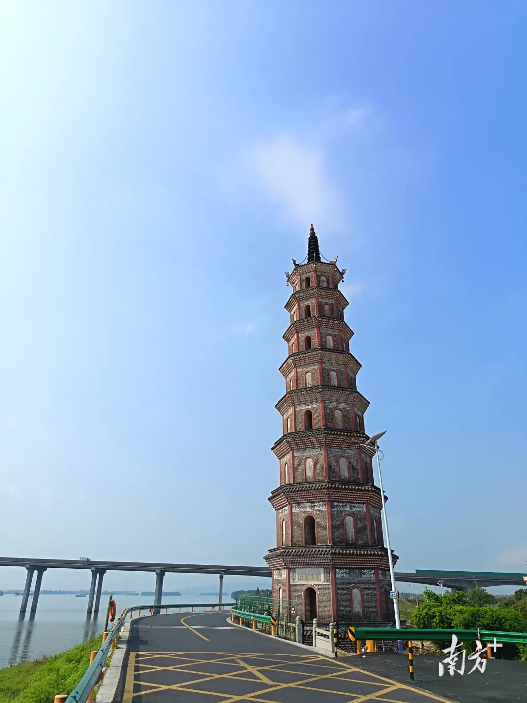 傍晚时分,夕阳的余晖洒在塔身,与波光粼粼的北江相映成趣。站在草坪上,以古塔为背景,随手一拍就是电影感大片。若是赶上清晨,江面薄雾缭绕,更添几分水墨意境。