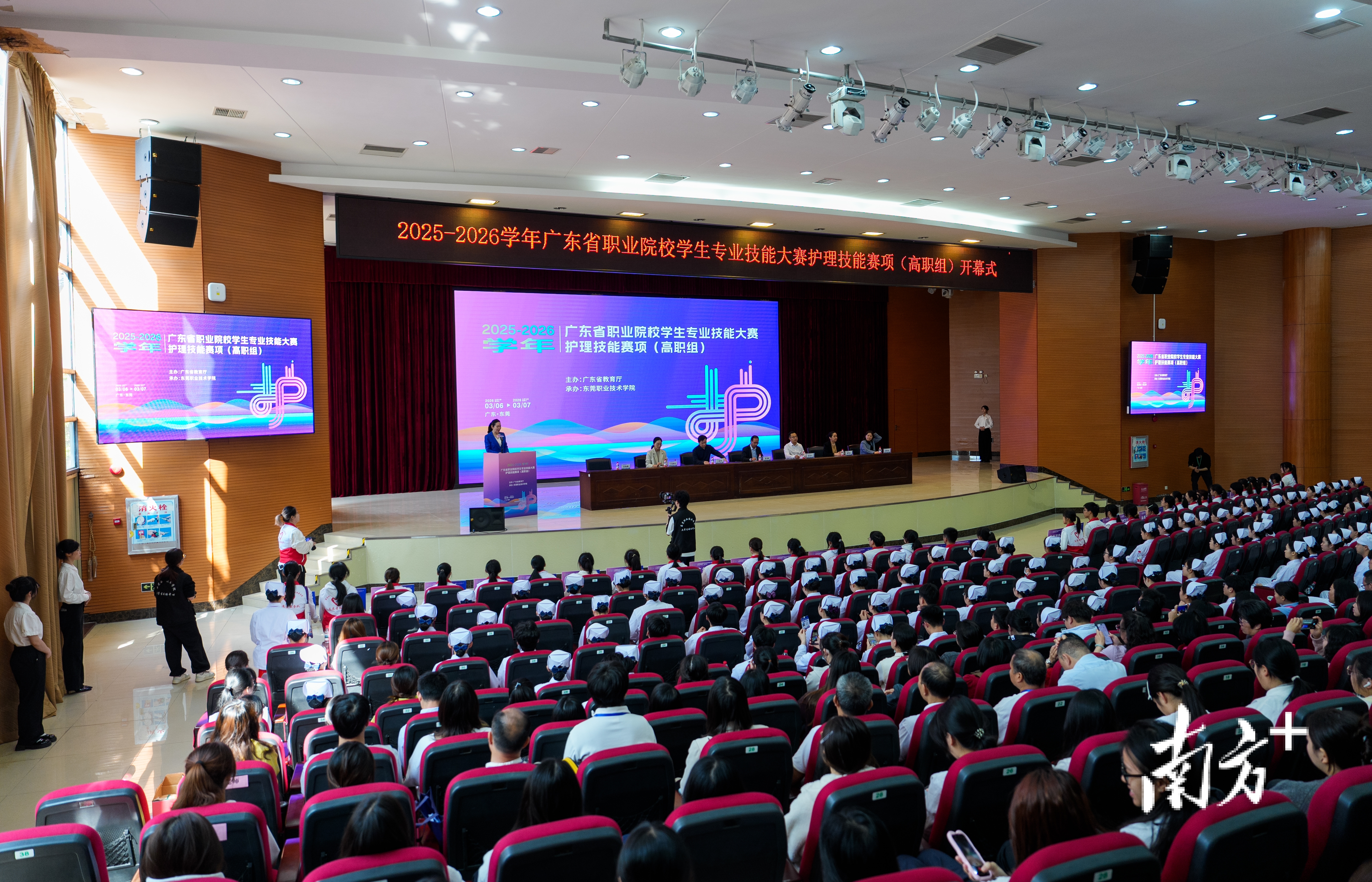 3月6日下午,2025-2026学年广东省职业院校学生专业技能大赛护理技能赛项(高职组)在东莞职业技术学院道滘校区开幕。本次大赛由广东省教育厅主办、东职院承办,吸引了全省33所高职院校共128名参赛选手、79名指导老师参加比赛。