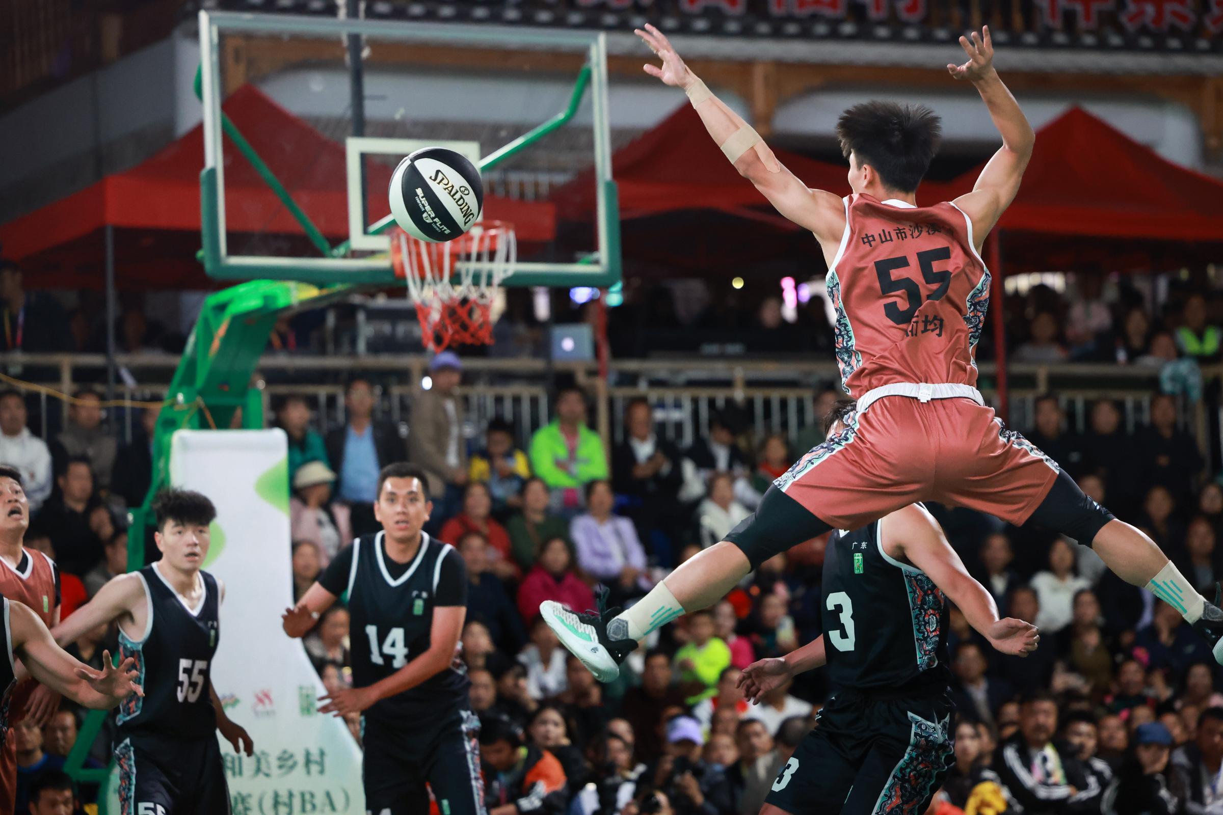 2023年10月28日,在贵州台江县台盘村举行的全国和美乡村篮球大赛总决赛中,广东沙溪队战胜广东大朗队获冠。 图源新华社