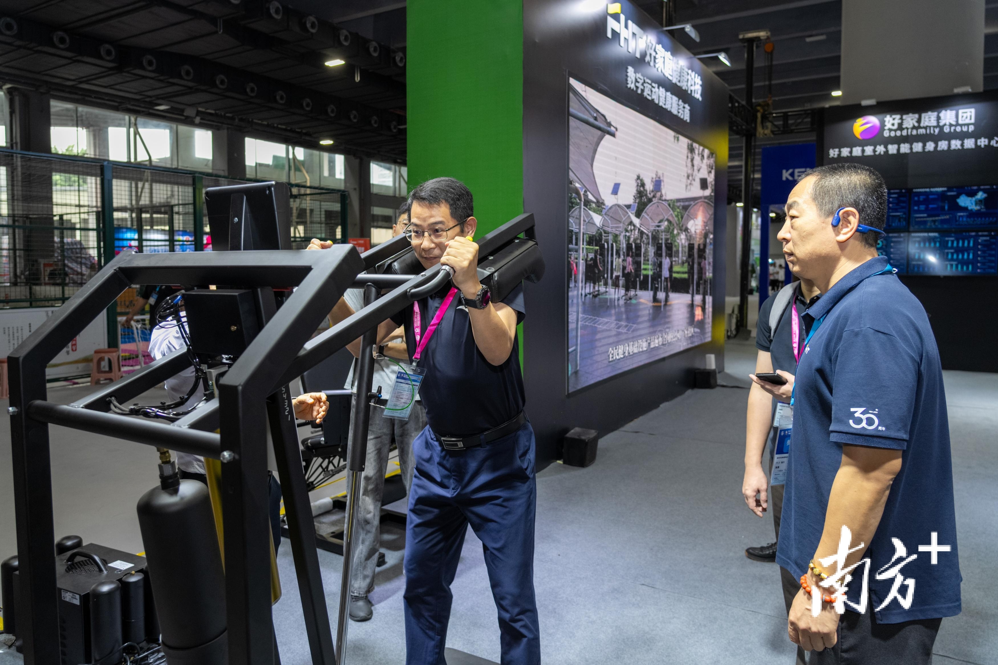 在第25届广东体博会现场,市民在体验智能健身设备。南方+记者 姚志豪 摄
