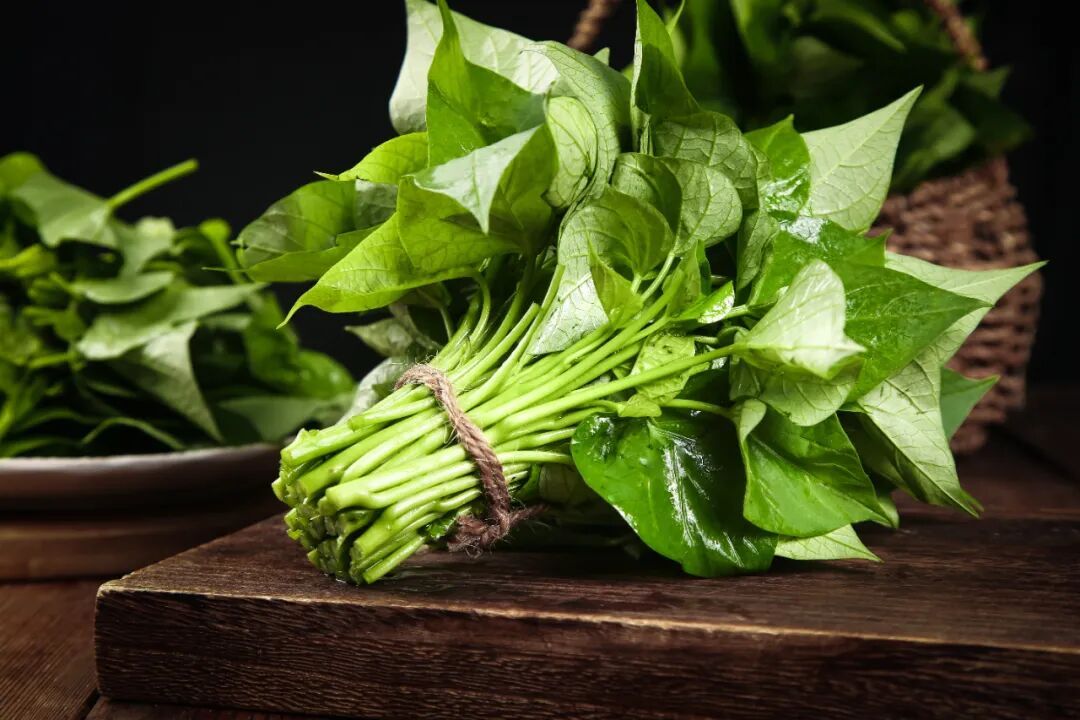 中医认为,红薯叶味甘性平而微凉,有生津润燥,健脾宽肠,养血止血,通乳通便,补中益气,祛火解毒等功能。老年人大小便不利,可取些红薯叶素炒吃;日久熬夜上了火,可用红薯叶煮汤喝。