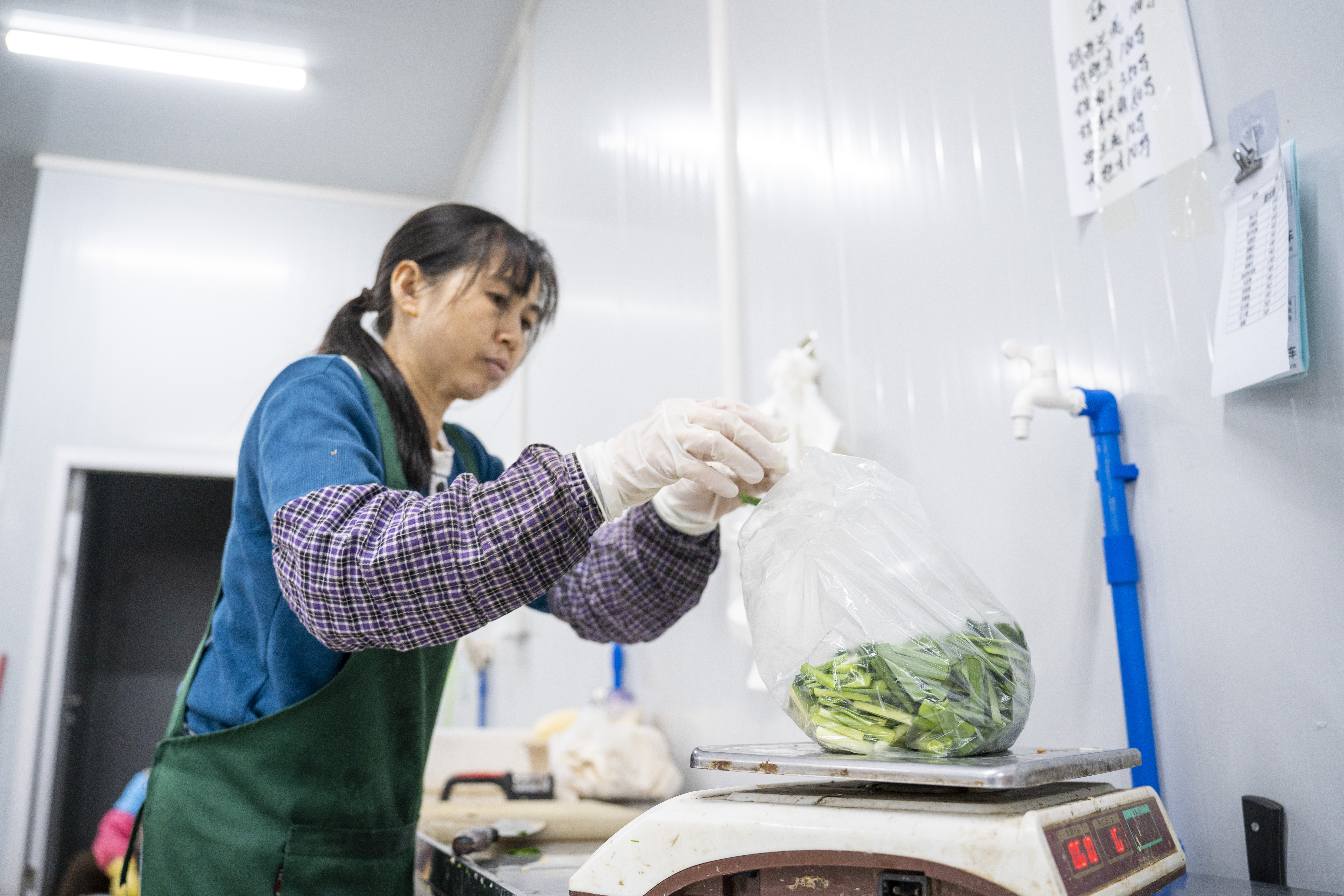 摘菜工人们正忙着采摘新鲜的茼蒿,这些被摘下来的茼蒿一茬茬被放在框里,随后企业开具供货证明,这些供货证明如同蔬菜“出生证”,记录着供货品种、农地名称、数量、种植过程和用药记录。伴随着供货证明,这些蔬菜被运往不远处的润丰国际蔬菜交易中心。