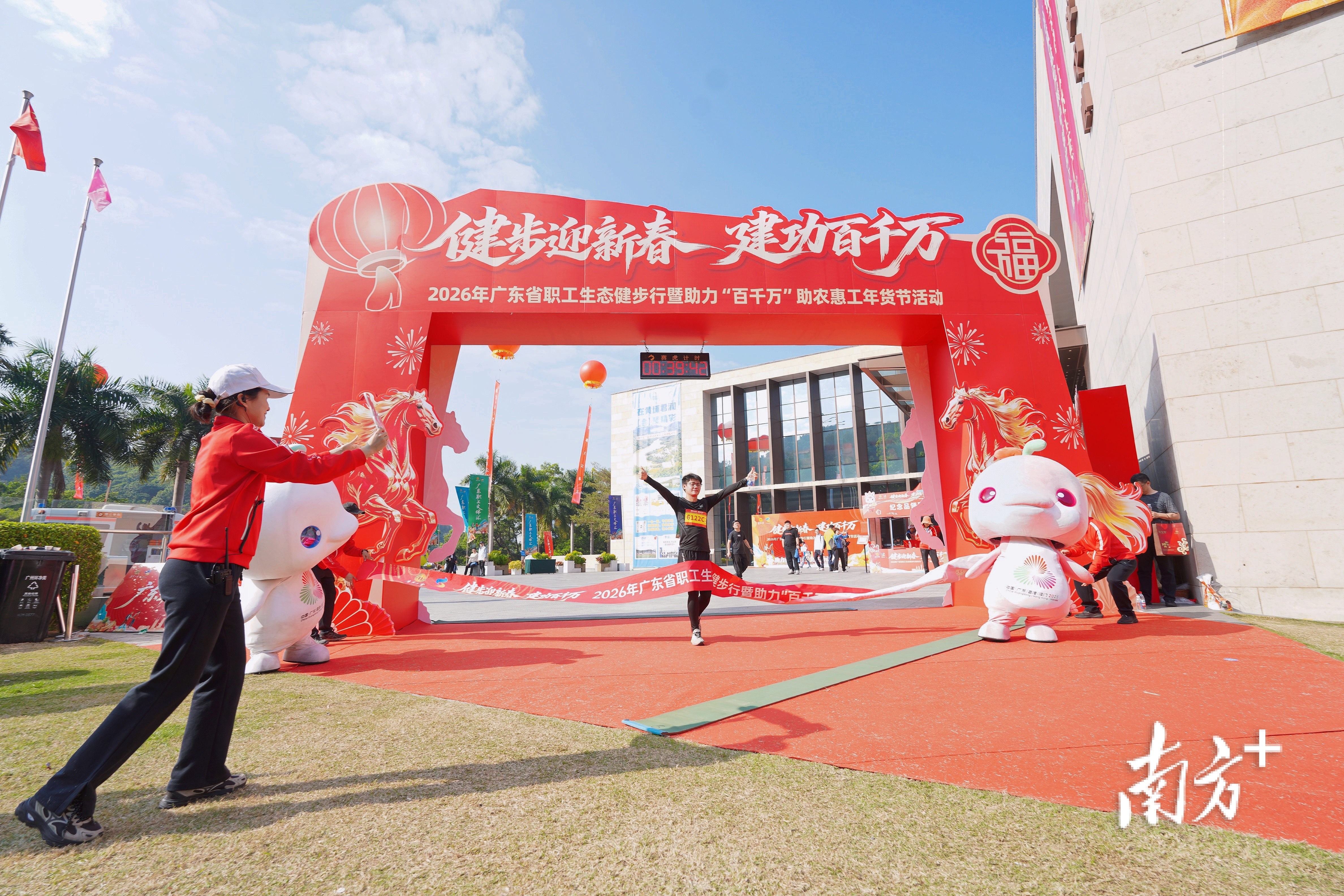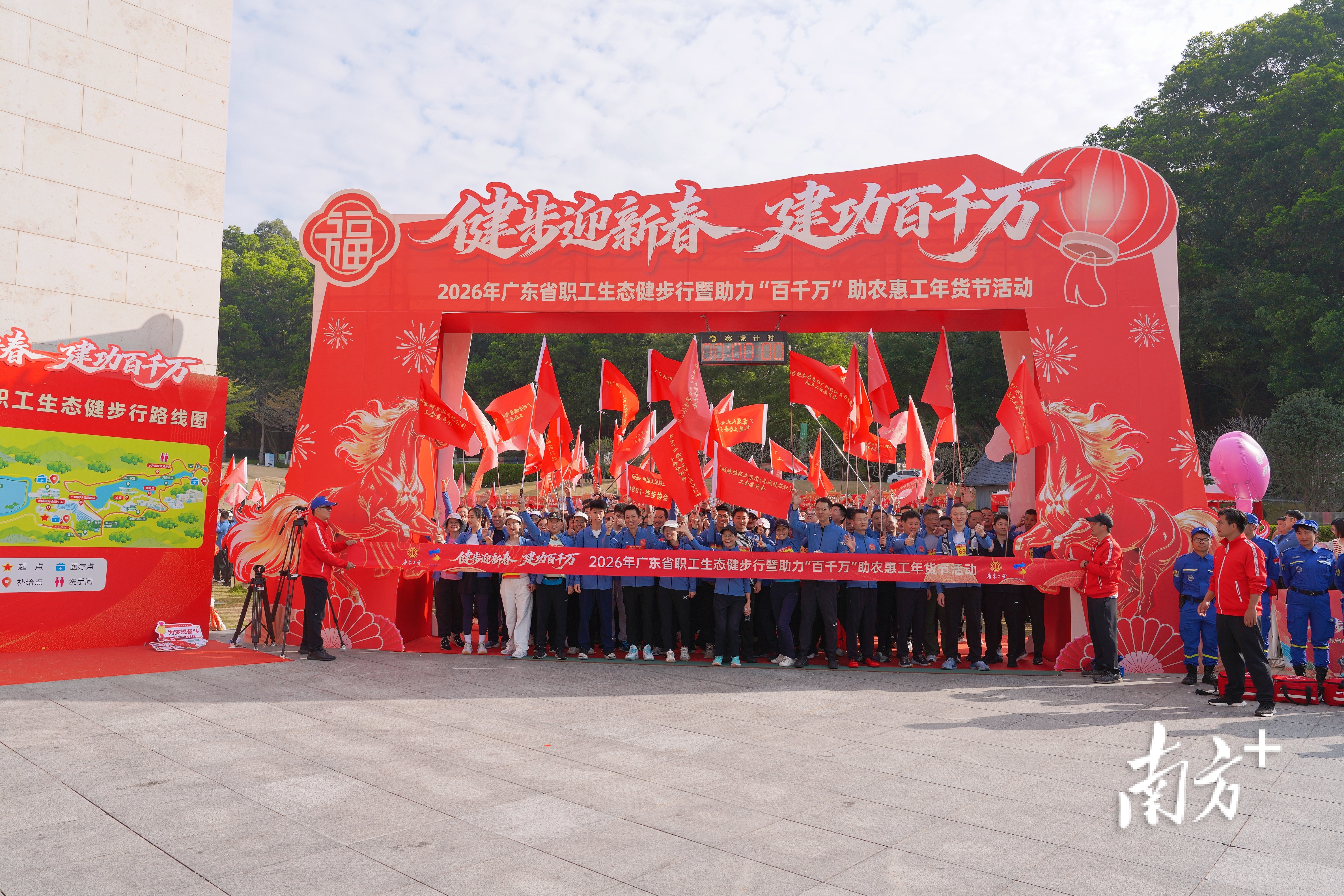 2月6日,“健步迎新春 建功百千万”2026年广东省职工生态健步行暨助力“百千万”助农惠工年货节活动在广州黄埔水声水库步道和休闲湿地公园举行。近1000名劳模工匠及职工代表在绿水青山间参与了这场“健步+助农+服务”创新实践。