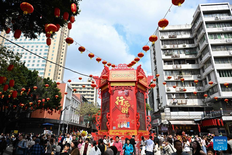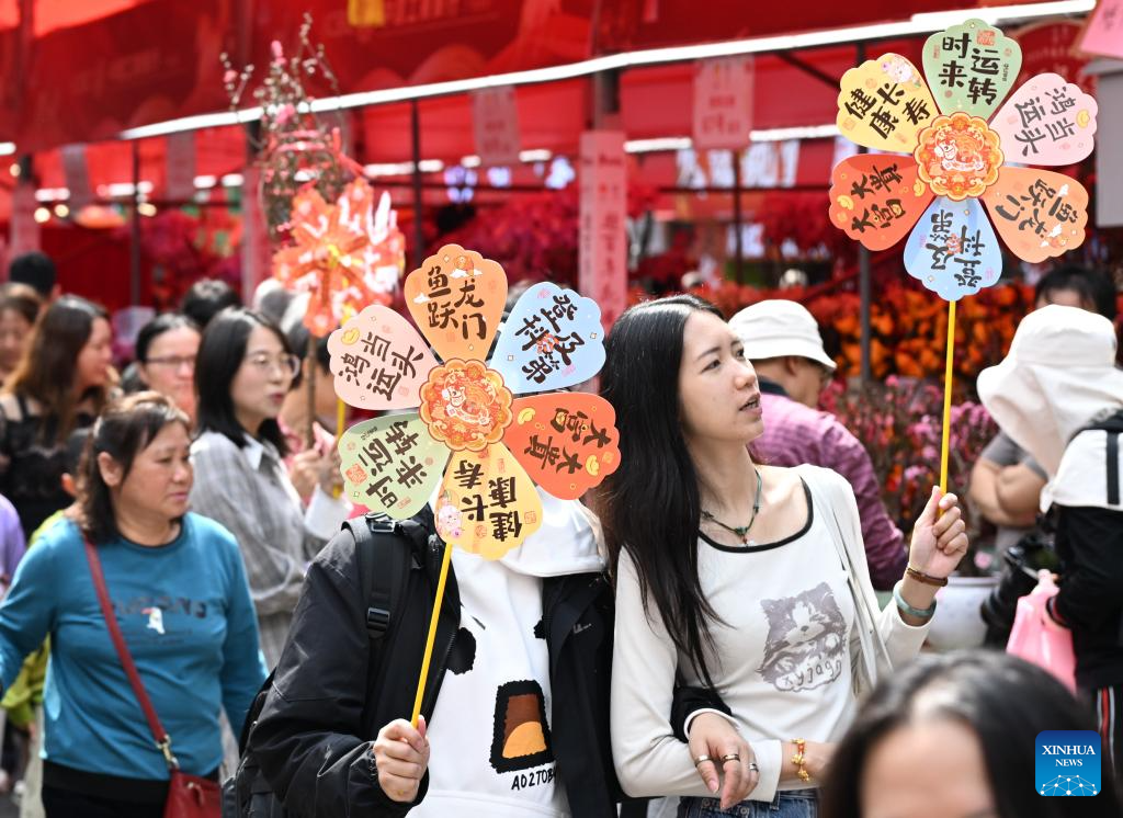 People visit a flower market in Yuexiu District, Guangzhou, south China's Guangdong Province, Feb. 15, 2026. China is alive with vibrant celebrations with the Spring Festival just around the corner. (Xinhua/Deng Hua)