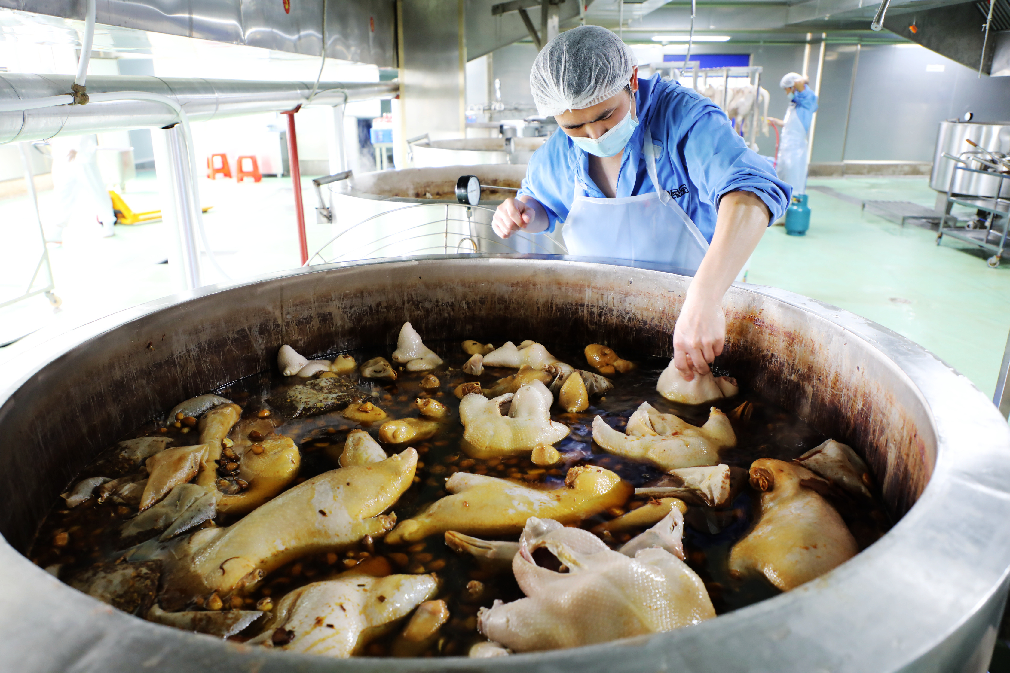 广东熙望食品有限公司卤鹅生产车间。