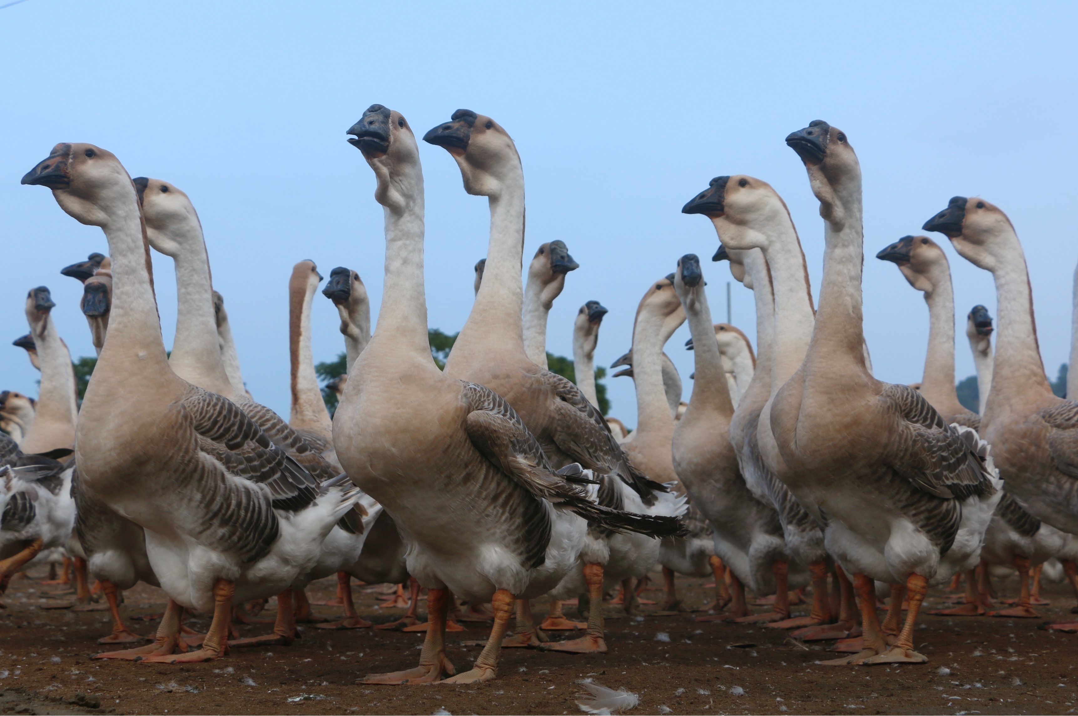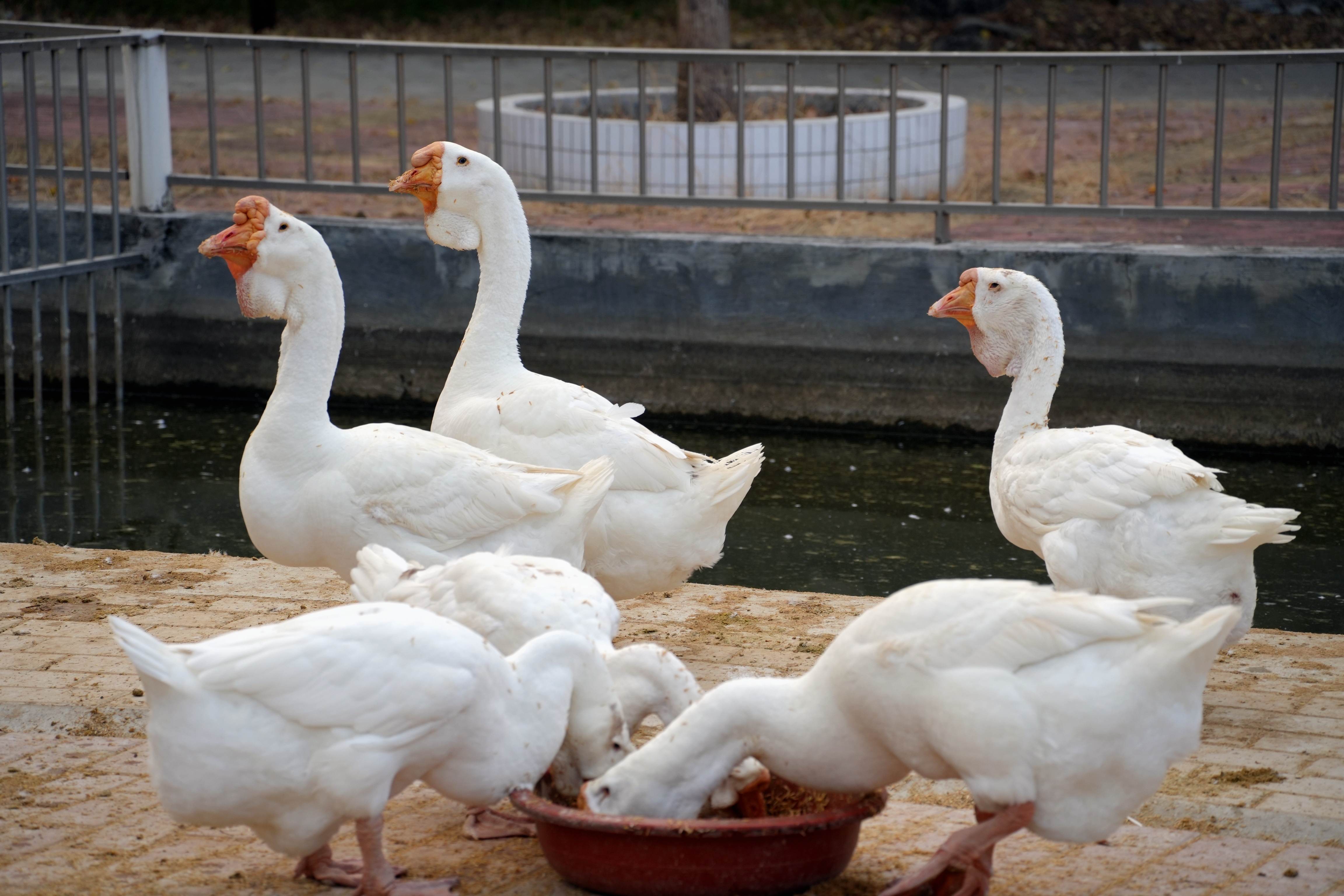 白沙禽畜原种研究所种鹅场的白羽狮头鹅。