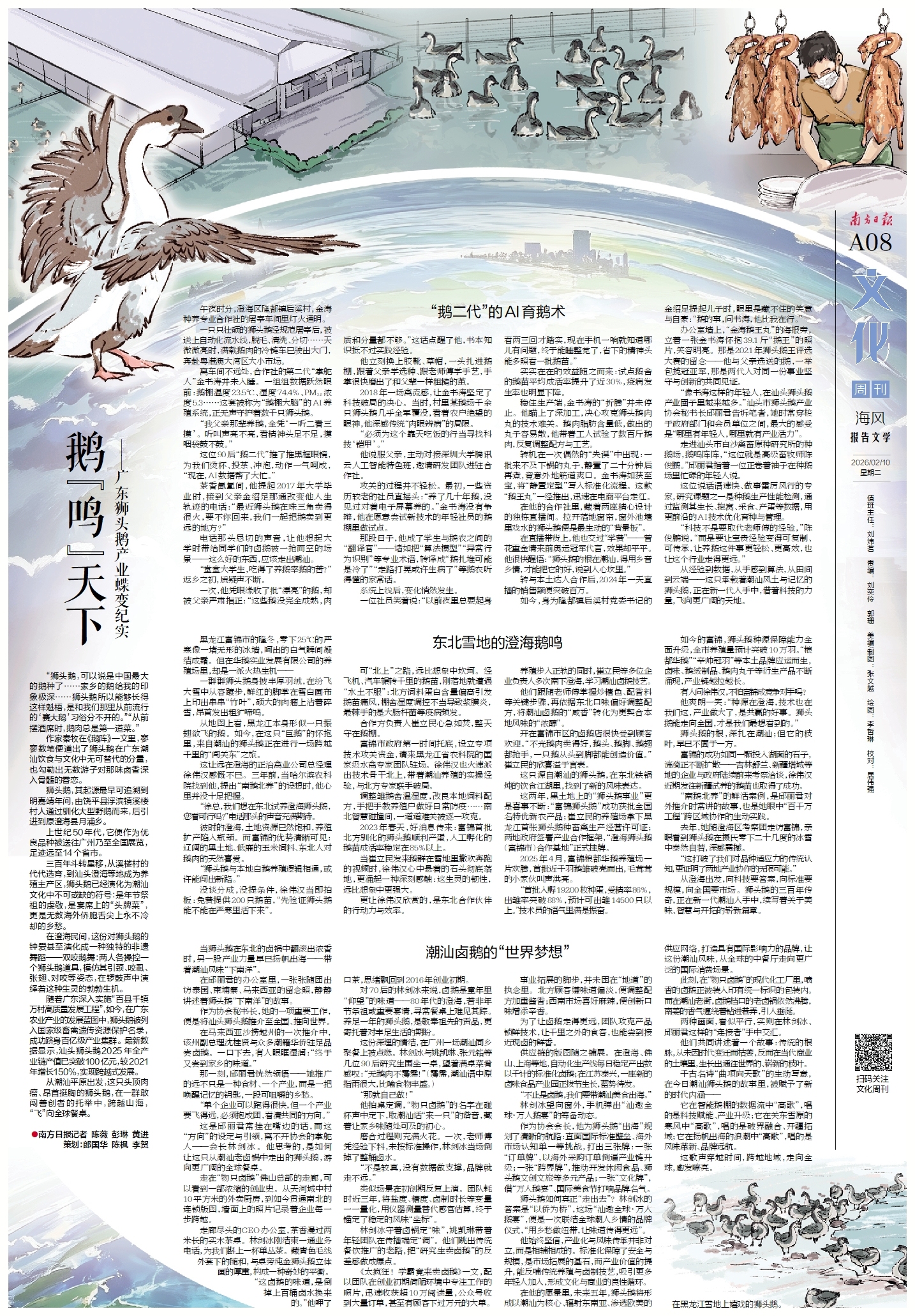 从潮汕平原出发,这只头顶肉瘤、昂首挺胸的狮头鹅,在一群敢闯善创者的托举中,跨越山海,“飞”向全球餐桌。