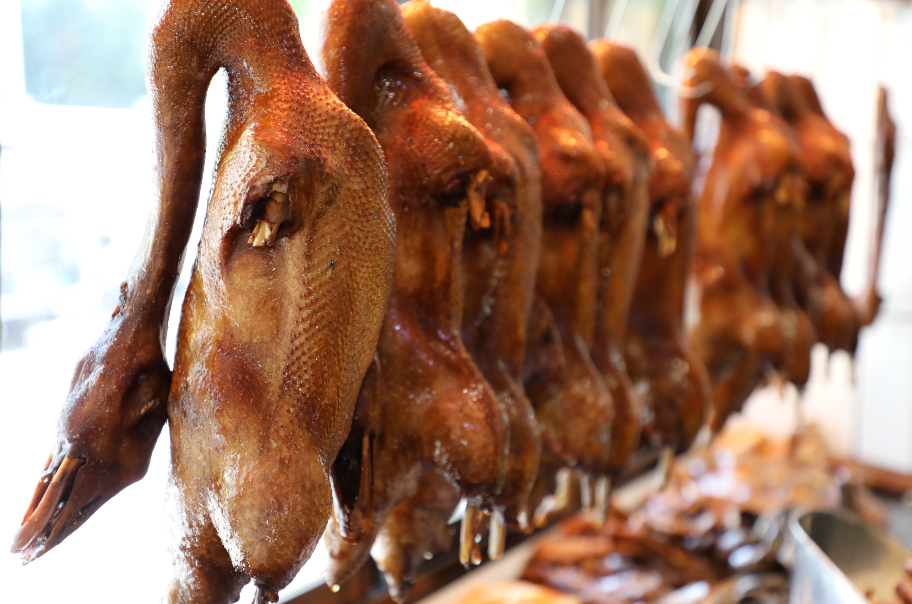潮汕卤鹅刚出锅便挂满档口,油亮的棕褐色外皮裹着卤香,是街头巷尾最诱人的烟火气。
