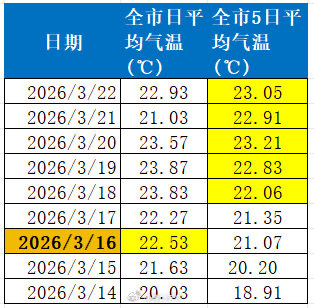 3月16日,佛山达到入夏标准。图源:@佛山天气