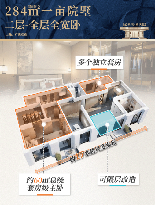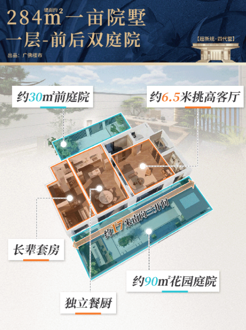 此次“好房子”标杆案例评选由南方日报联合业内专家学者深入调研推出,旨在推动“好房子”建设落地深化。在竞争激烈的佛山楼市中,大华紫樾府能够脱颖而出,核心得益于其在产品创新上的突破。不同于传统四代宅多聚焦平面优化的做法,该项目打造的“超新规四代墅”,以独立入户、独立私梯与独立庭院的私密组合为基础,创新采用“可分可合”的空间设计——纵向合并可形成联排墅院,横向合并则可打造大平墅,实现一套房源多种居住形态的灵活适配。