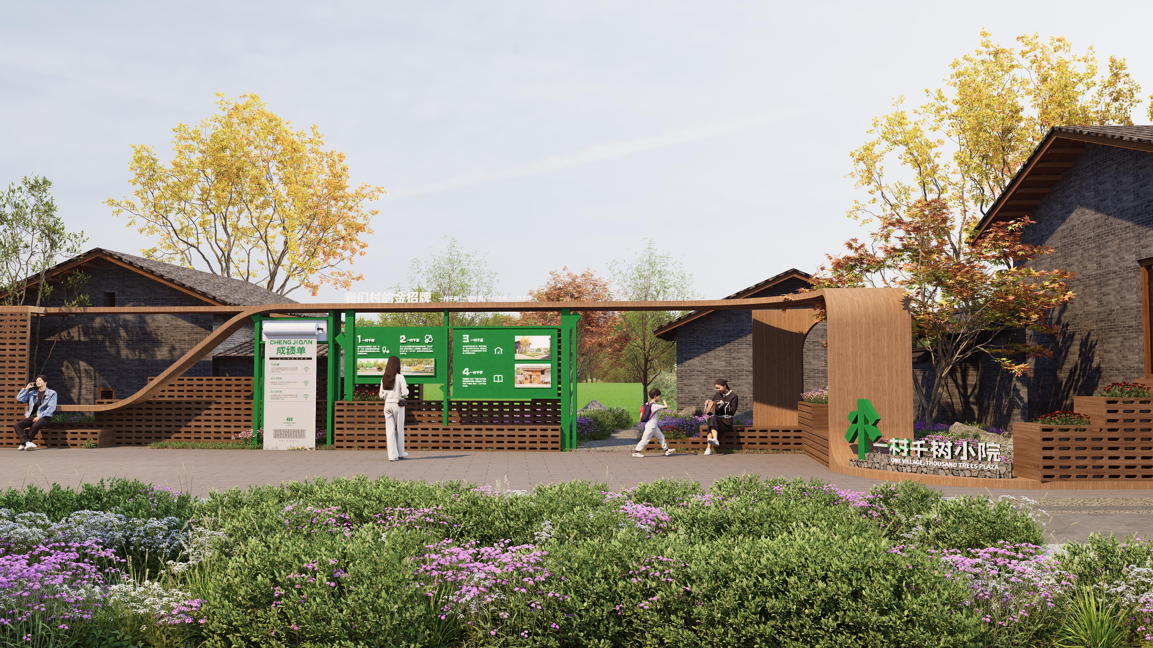 项目位于金装镇望高村,占地约10600平方米,重点推动公共空间改造与建筑美化提升。公共空间方面,优化村古街入口,建设“好苗子一号”苗圃、“一村千蜜”小院、“一村千品”小院、一棵树科普角及摄影社区等节点。建筑美化涵盖23栋连片农房外立面改造,打造望高村史馆、植觉书屋、蜜也茶咖、土特产小铺等特色空间。项目以“一村千树”绿化产业为引擎,促进生态优势转化为产业优势,通过美学与产业双轮驱动,激发乡村活力,构建“生态美化—产业增值—农民增收”的可持续发展链条。
