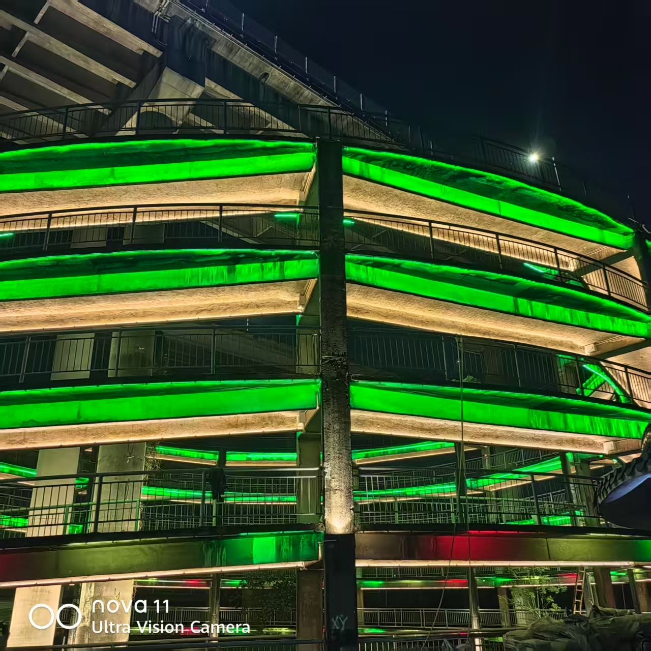 项目位于西江大桥北侧圆形引桥,由中铁广州工程局捐资建设,内容包括夜景灯光亮化与盘梯路面修复美化,旨在打造夜间文旅网红打卡点。项目以鲁班奖加持的双环建筑为基础,推动其从“交通设施”向“夜间文旅IP”升级,塑造端州可视化城市符号,助力带动周边餐饮、文创等产业发展,为片区文旅注入新活力。