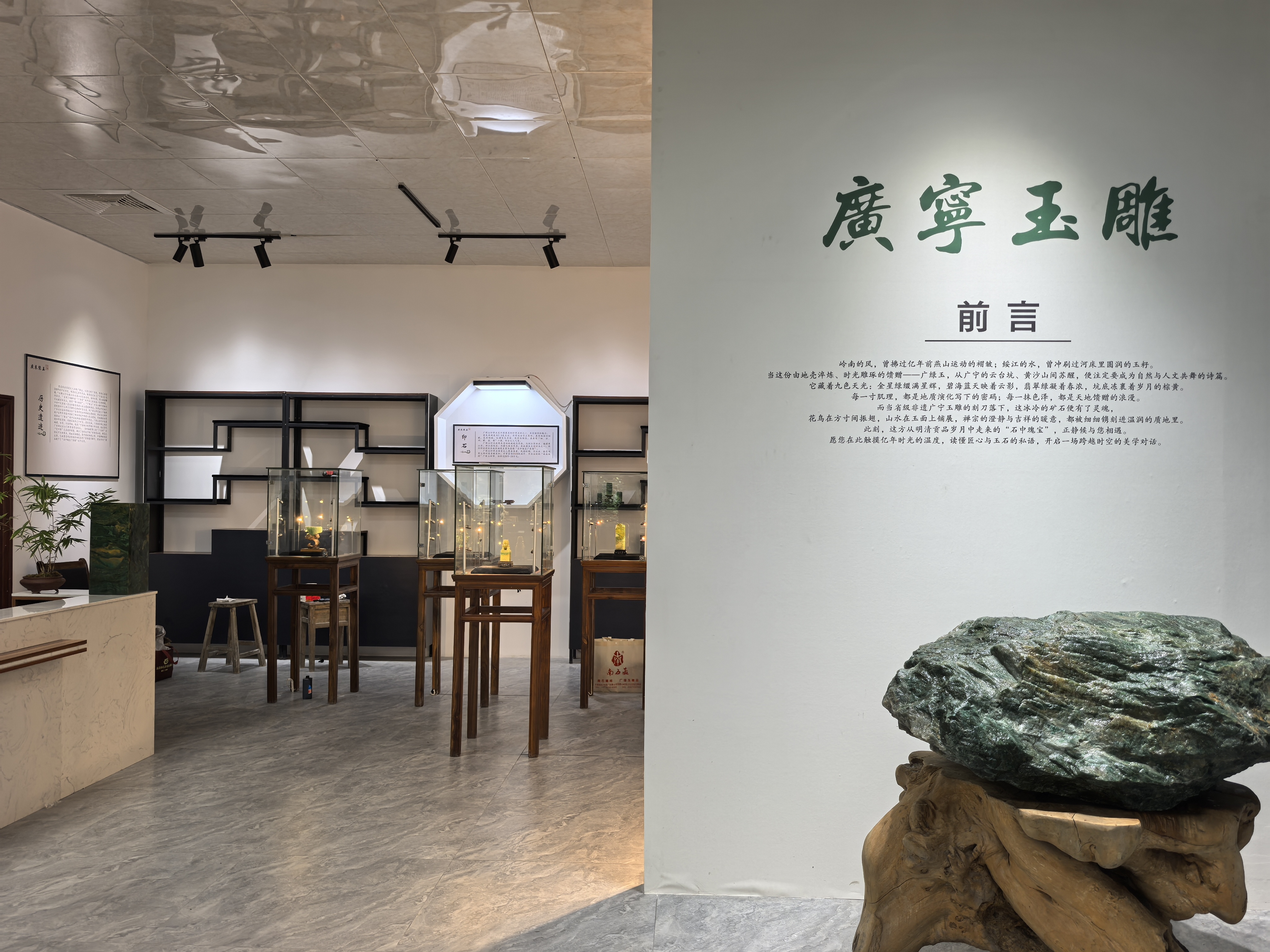 广宁县体育中心内旅游信息咨询中心经改造,现已升级为广绿玉主题展馆。展馆以“传承文化、融合旅游、服务群众”为宗旨,系统设置溯源区、展览区、藏品区、工艺区及大师工作室五大功能板块,集广绿玉的展示、技艺传承与互动体验于一体,致力打造文旅融合示范点,提升区域旅游吸引力和文化影响力。
