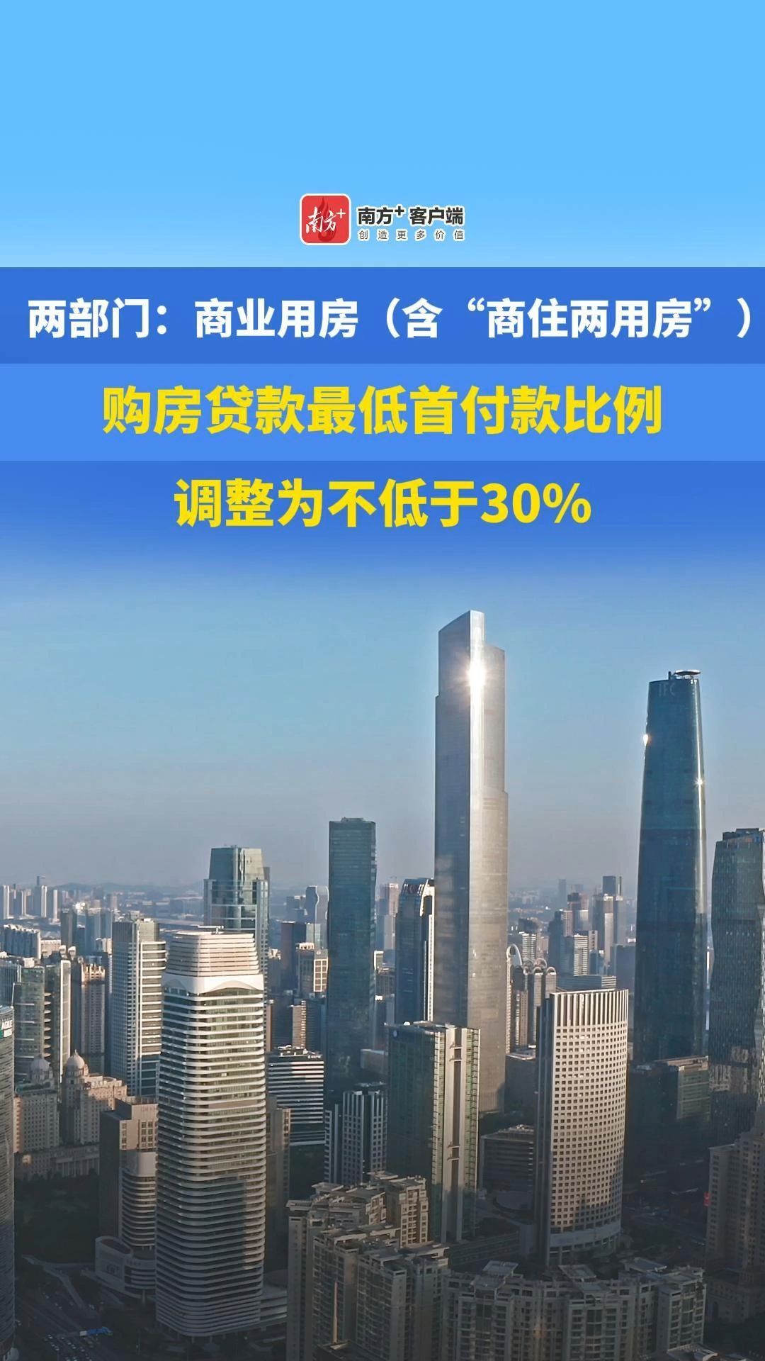 两部门:商业用房(含“商住两用房”)购房贷款最低首付款比例调整为不低于30%