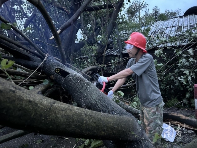 台风过境后,城西街道多条主干道被吹倒的树木阻断,枝丫横亘路面,不仅影响居民出行,更可能耽误应急车辆通行。先锋队来不及休整,又扛起手锯、绳索赶赴清障现场。