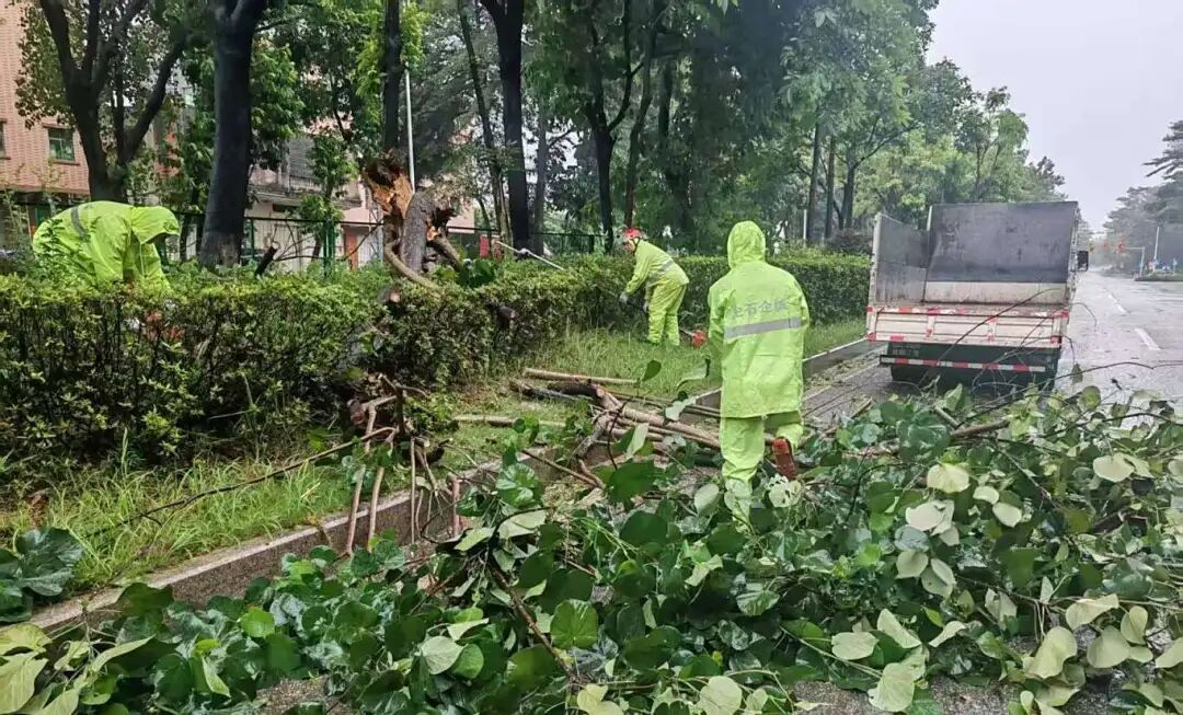 与此同时,狂风呼啸的街头巷尾,横沥城管分局工作人员的身影格外坚毅。他们加大动态巡查力度,对被狂风刮断的树枝、散落的杂物及时清理并转运至安全地带,确保道路畅通;针对辖区内存在倾倒风险的树木,逐一排查后迅速设置警示标志,引导行人车辆绕行,切实守护市民“头顶上”的安全和“脚底下”的畅通。