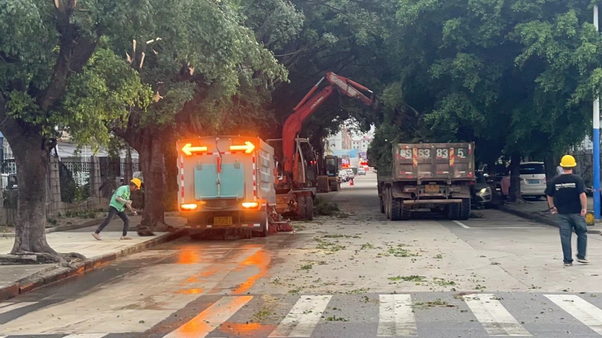 为快速恢复道路畅通、保障市民出行安全,企石城管分局第一时间启动应急抢险预案,联合铁骑队员、巡防队员,组织综合执法人员与环卫企业开展“地毯式”应急清障工作,确保倒伏树木、断枝杂物得到及时清运。