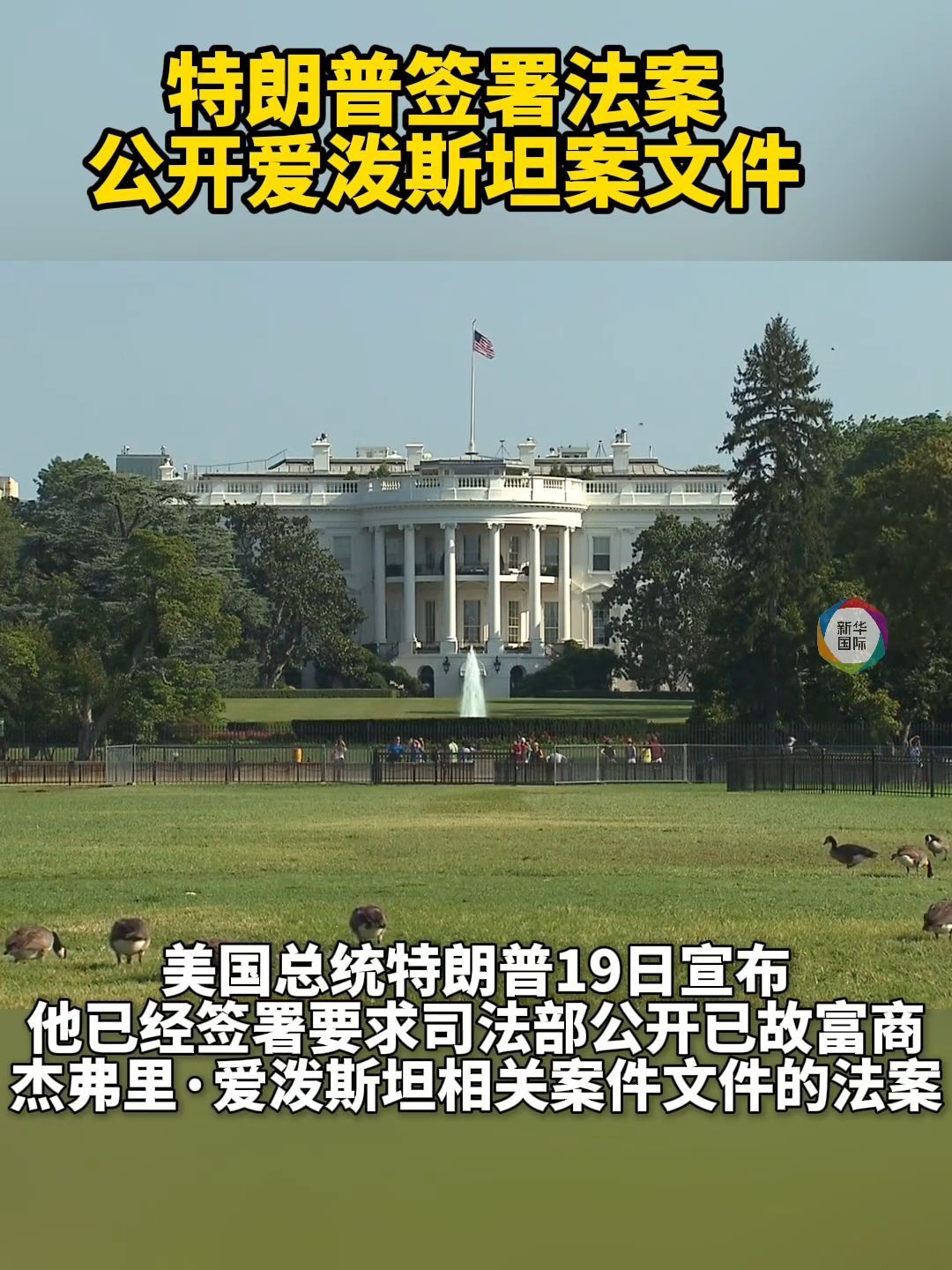 美国总统特朗普19日宣布,他已经签署要求司法部公开已故富商杰弗里·爱泼斯坦相关案件文件的法案。