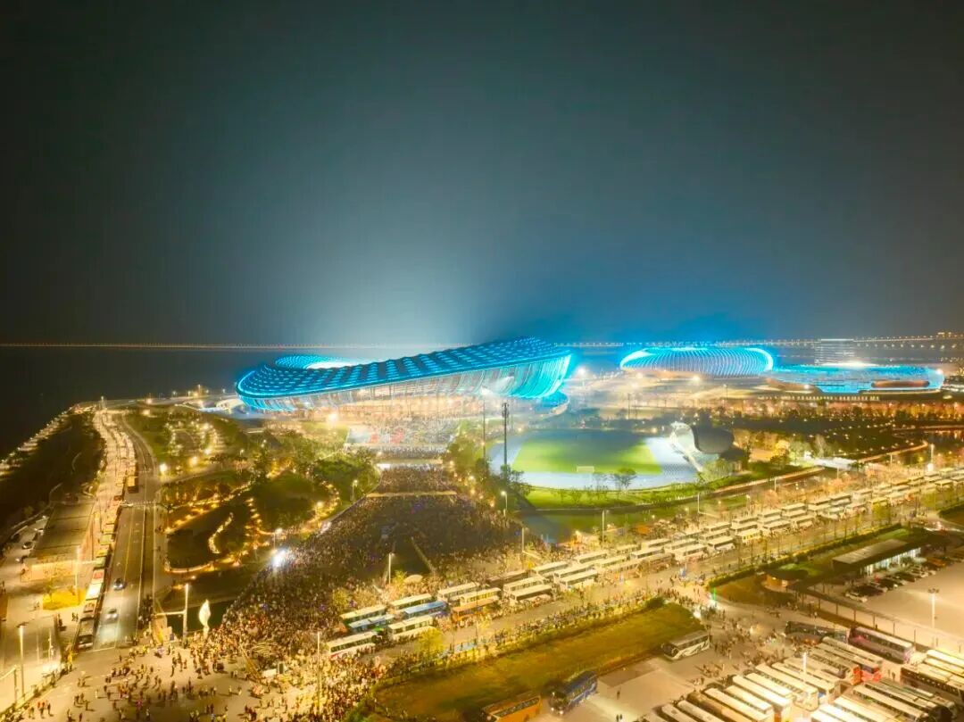 大湾区文化体育中心项目于2023年8月动工,并于2025年6月交付使用。中心包含6万座甲级综合体育场、2万座多功能体育馆及4000座游泳跳水馆。