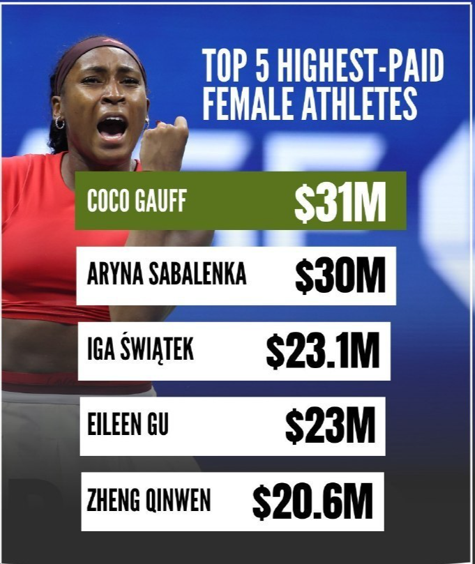此前,12月4日,据北青体育,近日,体育财经媒体Sportico公布了2025年女子运动员收入排行,高芙连续三年蝉联第1,谷爱凌位列第4,郑钦文第5,前15中网球选手占据10位。