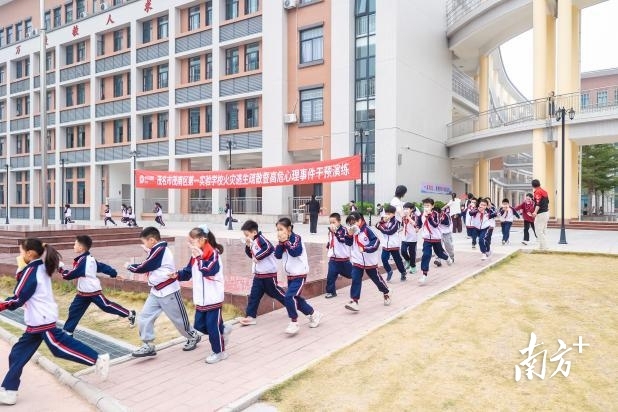 近日,一场校园安全防护演练活动在茂名市茂南区第一实验学校举行。活动旨在全面筑牢校园安全防线,健全校园心理安全防护长效机制,提升师生风险防范与应急处置能力。
