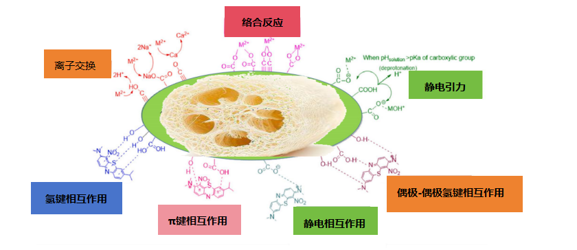 丝瓜络对染料和重金属的吸附机理(图片来源:参考文献[2])