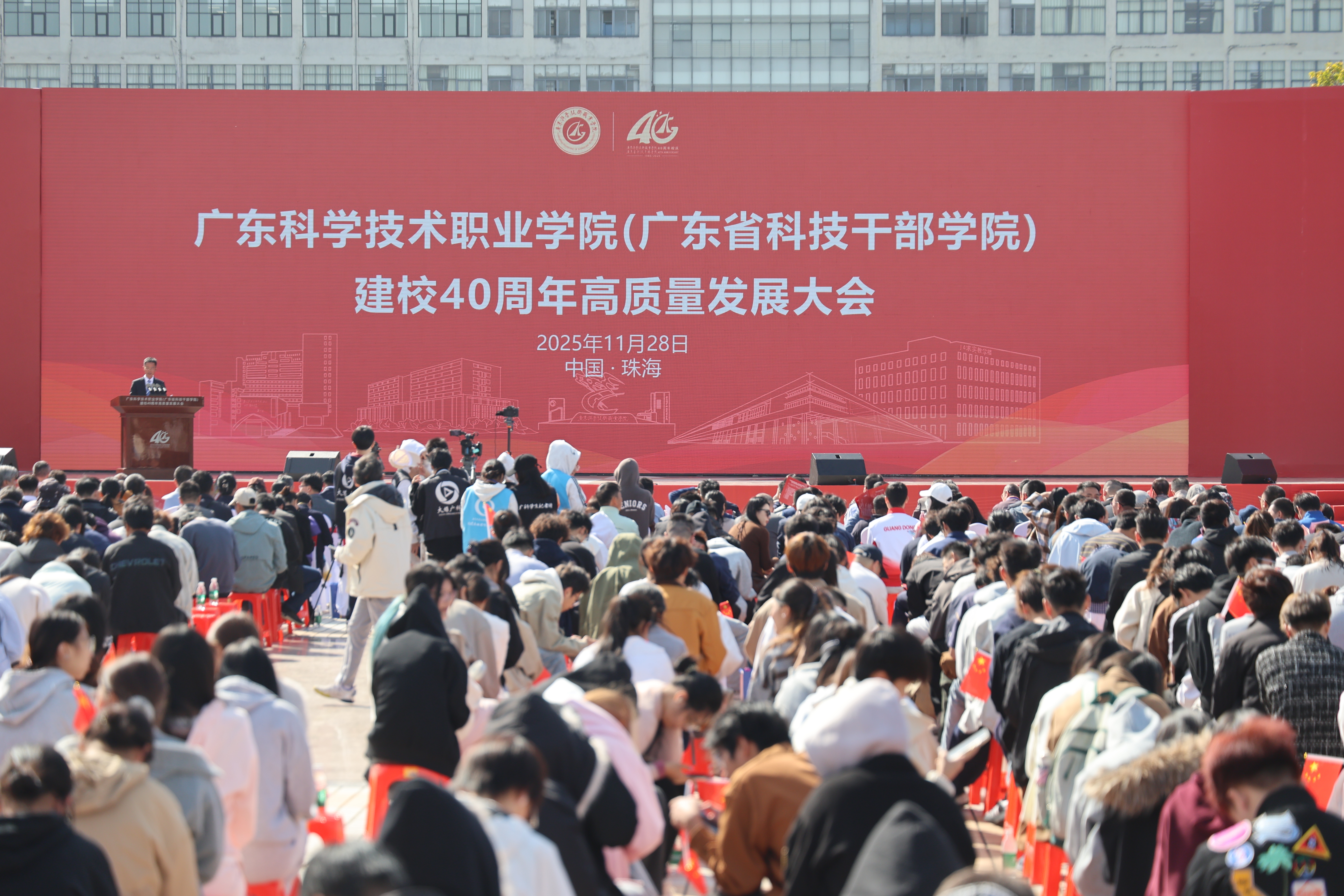 11月28日,广东科学技术职业学院(广东省科技干部学院)建校40周年高质量发展大会在珠海校区举行。本次大会以“四秩华章 科创致远”为主题,会聚来自政府、兄弟院校、合作企业及校友师生代表等2000余人,共同回顾学校四十年砥砺奋进的办学历程,展望未来高质量发展新征程。
